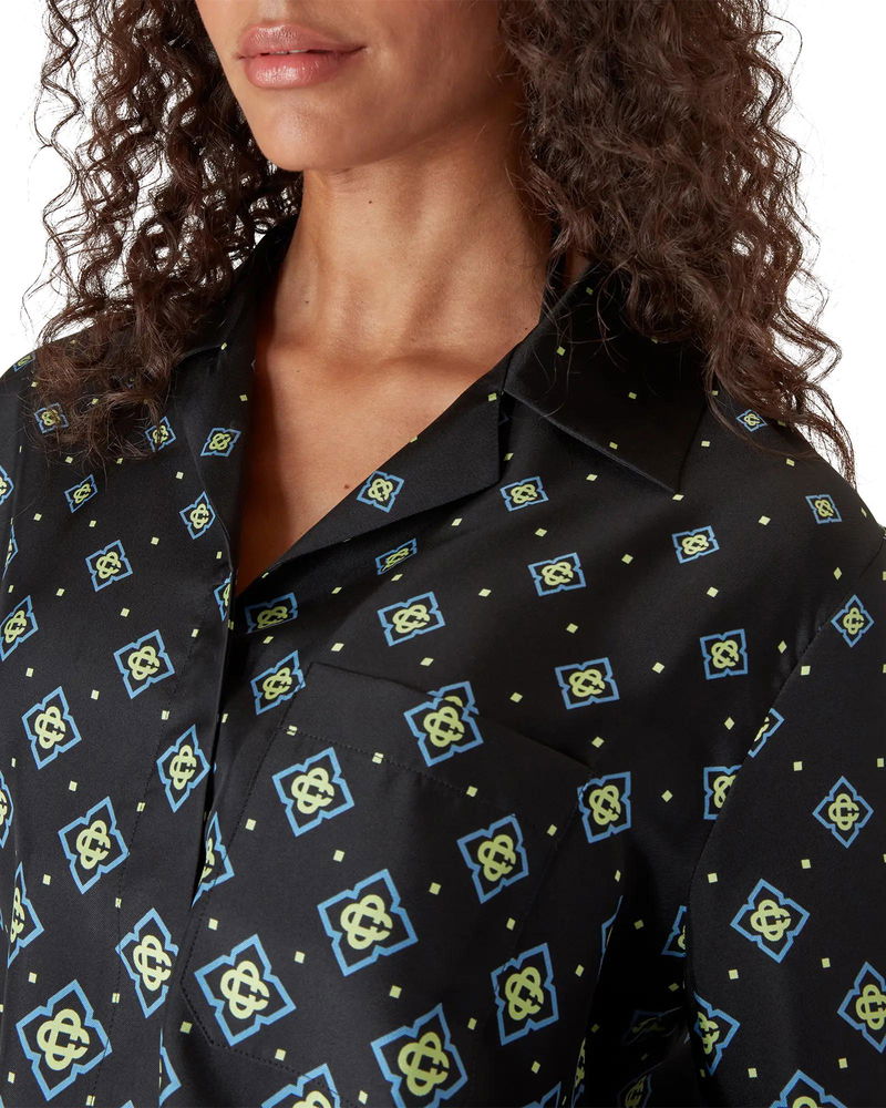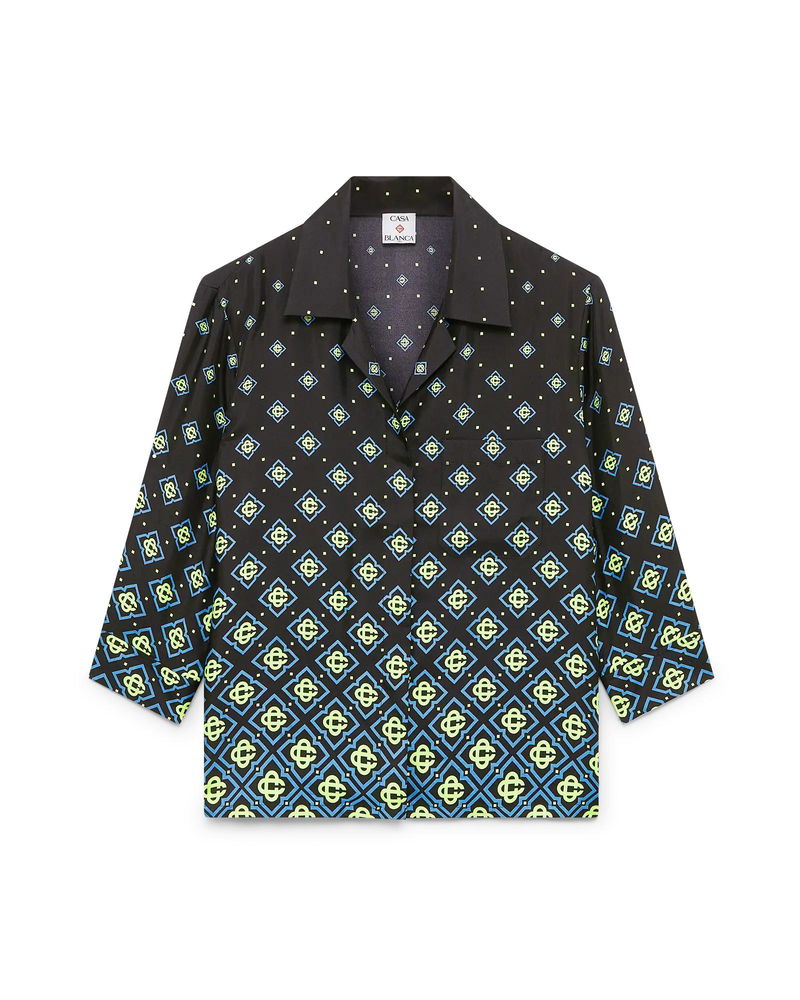 The Degrade monogram long-sleeve shirt is a refined design featuring the house's signature black monogram pattern. Completed with a Cuban-style collar, button closure, a breast pocket, interlocking CC logo corozo buttons, and the house's signature gold rim enamel buttons on the cuffs.