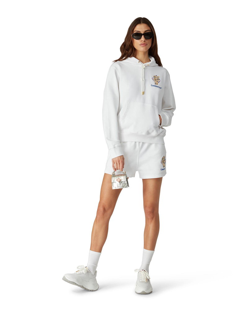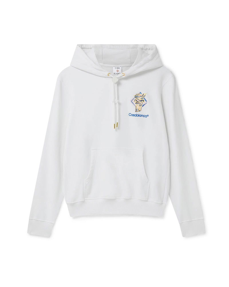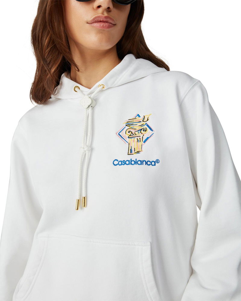 The diamond column hooded sweatshirt is a classic design crafted from organic cotton fabric featuring the house's crayon iconography of a column. Completed with the house' s patch logo, a hood with gold-tipped drawstring for secure fastening, rib cuffs and hem.