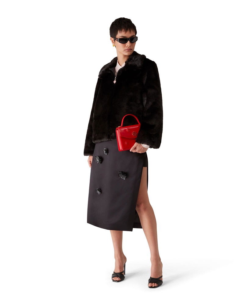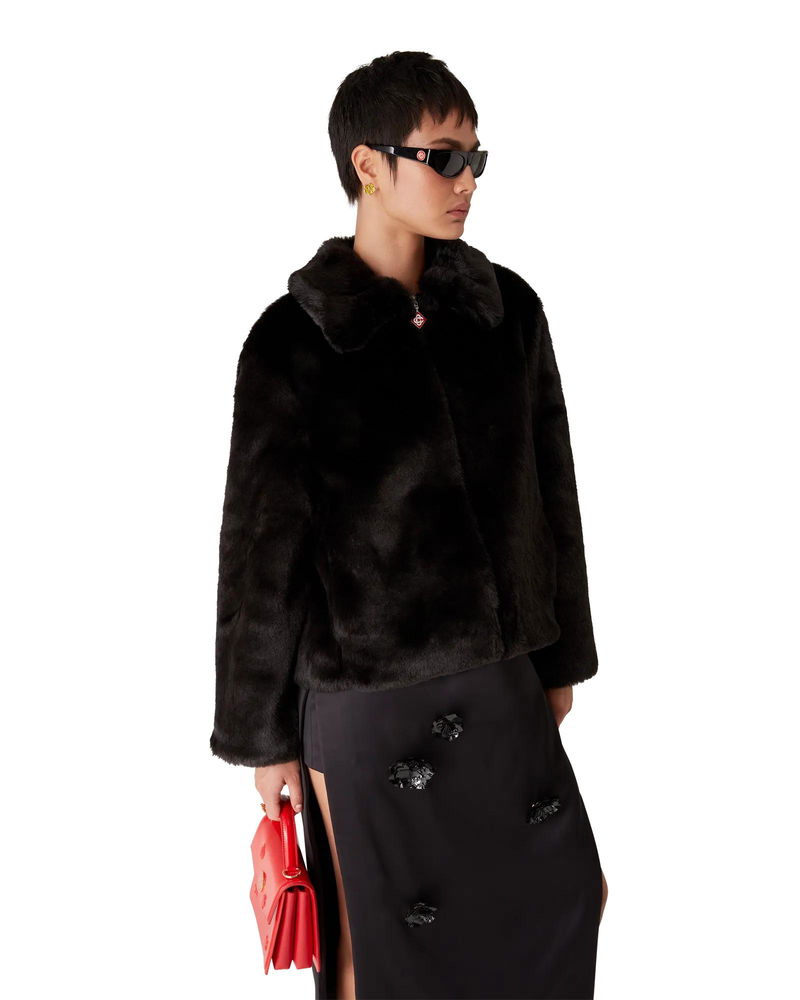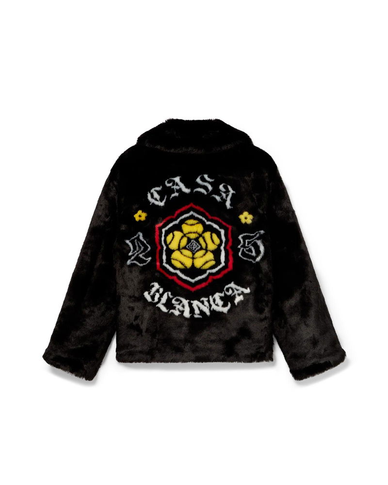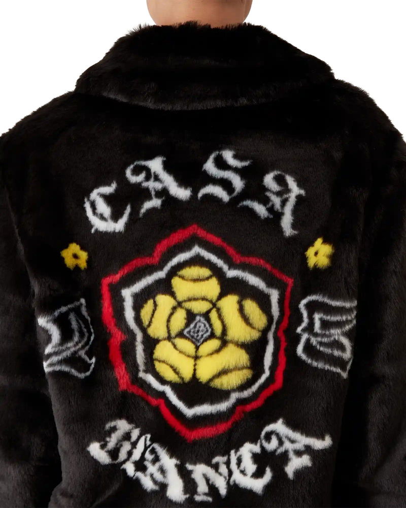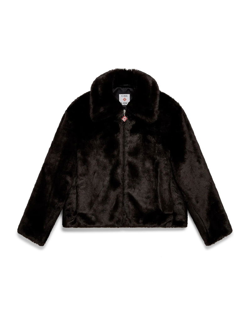 The faux fur jacket is a long-sleeve outerwear design featuring the season's artwork where we drew inspiration from the Japanese subculture of Bōsōzoku for one of our main themes. Completed with a lining, a zip closure featuring the house's signature diamond logo zipper tab, vertical welt pockets, and a lining. Faux fur fabric Main: 100% acrylic Contrast: 100% polyester Colour: black Specialised dry clean only Made in Portugal Relaxed fit The model is 179cm/5'10 and is wearing a size S Faux Fur Jacket, Size 34 (6UK) by Casablanca Paris