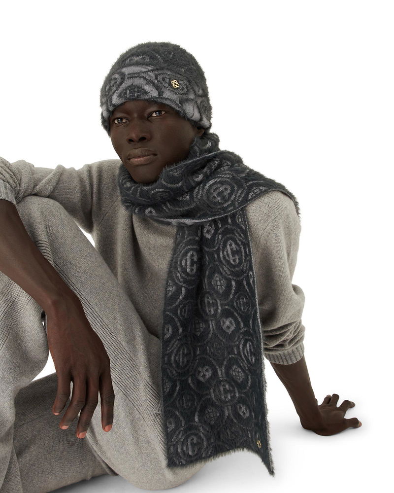 The fluffy monogram mohair scarf is a reversible knitted design featuring the house's heart and interlocking CC monograms.