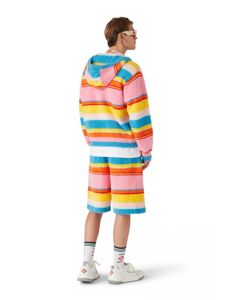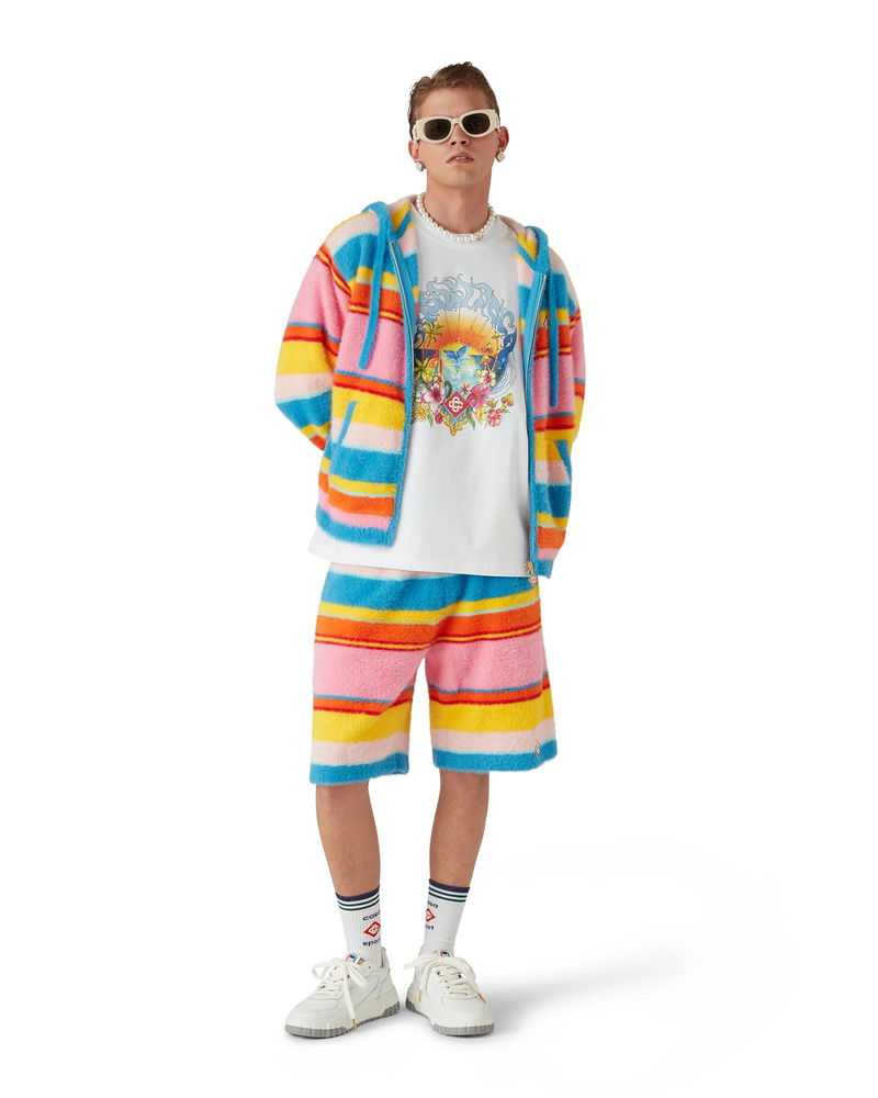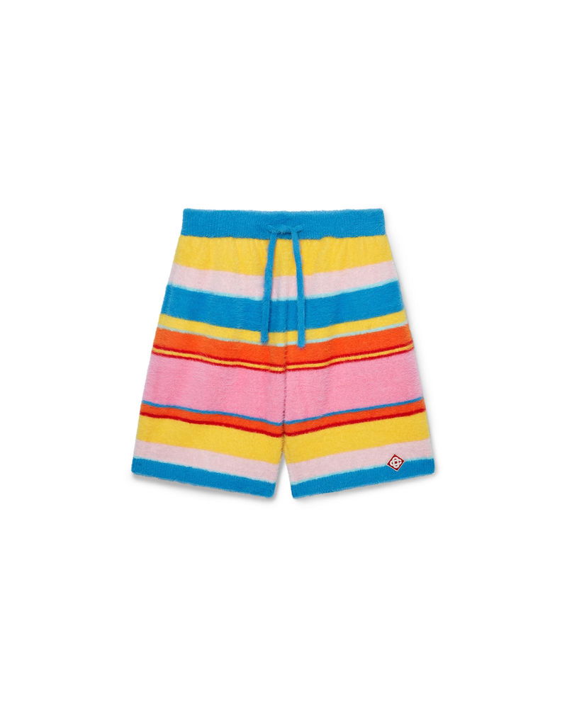 The fluffy stripe oversized shorts are a knee-length design crafted from stripe, fluffy knitted fabric. Completed with the house's signature diamond logo, an elasticated waistband, drawstring fastening, slanted front pockets and a back patch pocket. Fluffy knitted fabric Main: 85% polyamide 15% cotton Colour: blue multicolour Specialised dry clean only The model is 185cm/6'1 and is wearing a size M Made in China Fluffy Stripe Oversized Shorts in Blue, Size Small by Casablanca Paris
