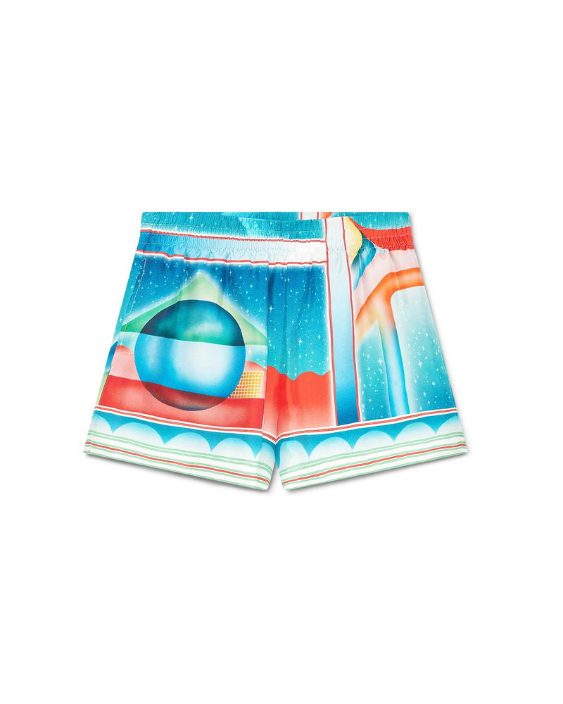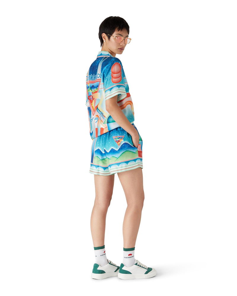 The Galaxy Court silk shorts are an all-over printed design crafted from silk twill fabric. Completed with an elasticised waistband, drawstring fastening, a lining, in-seam side pockets, and a back pocket.