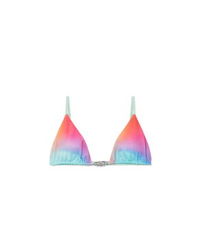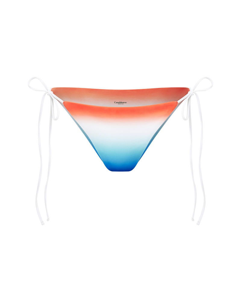 The gradient bikini bottom is a printed design crafted from a breathable technical fabric, featuring a restrained palette of blue, aqua, white and orange in a colour gradient created especially for the collection crafted from a technical fabric. Completed with white trims, and string fastening, and features the house's signature interlocking CC rivet - intended to be worn with its coordinating top.