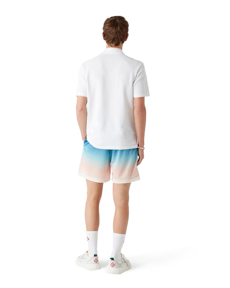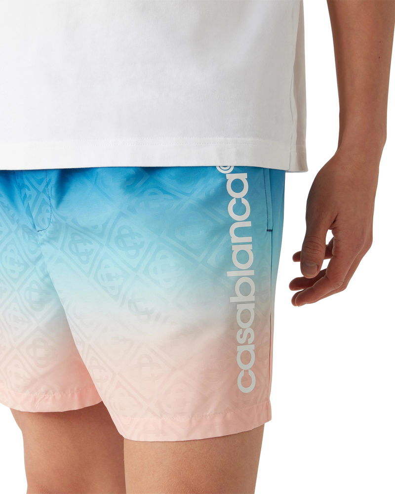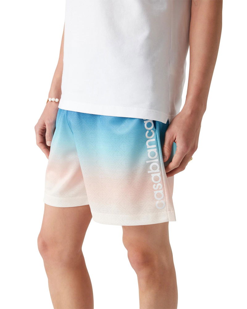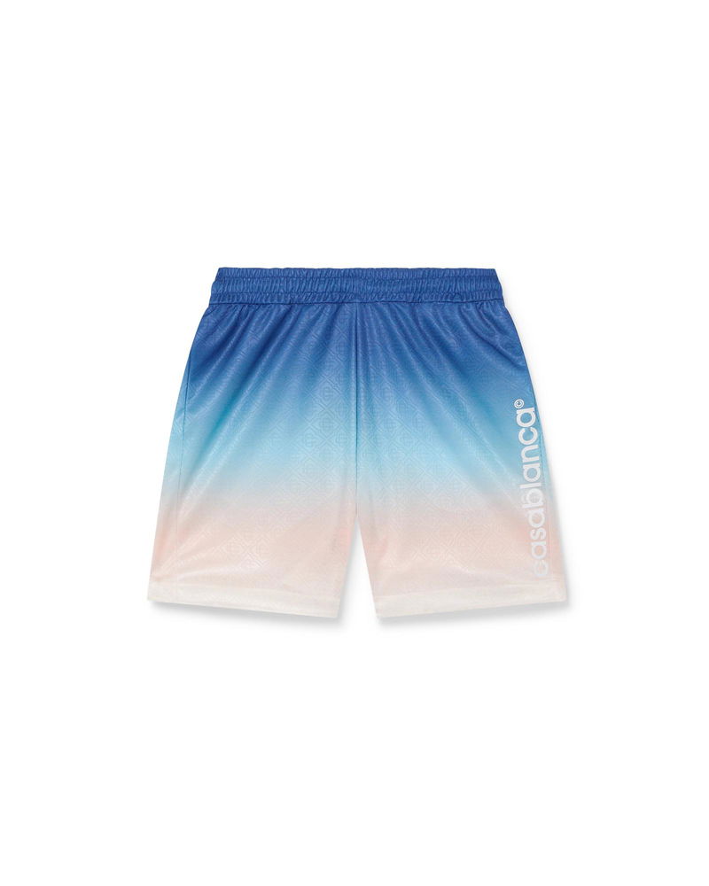The gradient football shorts are a sportswear design featuring a gradient series of colours emphasising themes core to our brand. Crafted from a jacquard monogram polyester fabric incorporating the house's signature Casablanca logo down the side. Completed with an elasticated waistband with drawstring fastening and in-seam side pockets. Jacquard monogram fabric Main: 100% polyester Lining: 100% polyester Colour: blue gradient Delicate machine wash Made in Portugal The model is 185cm/6'1 and is wearing a size M Gradient Football Shorts in Blue, Size Small by Casablanca Paris