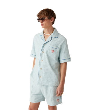 Monogram Wave Cropped Short Sleeve Silk Shirt