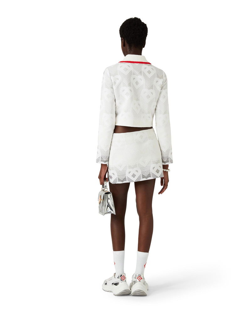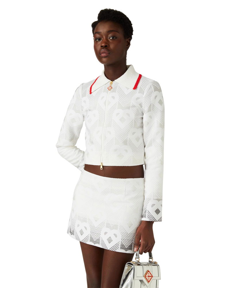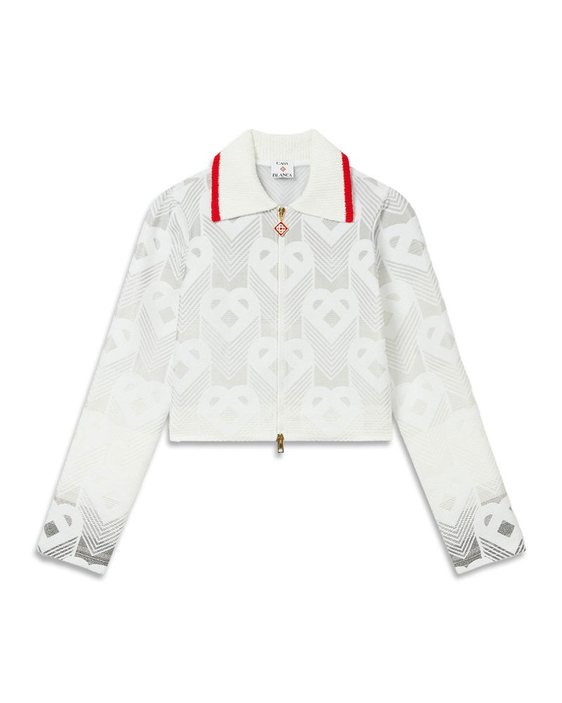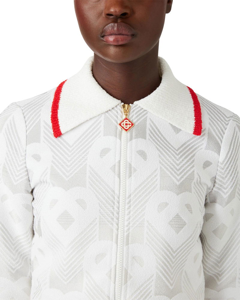 The Gradient Heart Monogram towelling jacket is an all-over printed design featuring the house's heart monogram on this season's grey gradient background. Crafted from a towelling monogram cotton blend fabric and finished with a zip closure, a collar, an elasticated hem and cuffs.