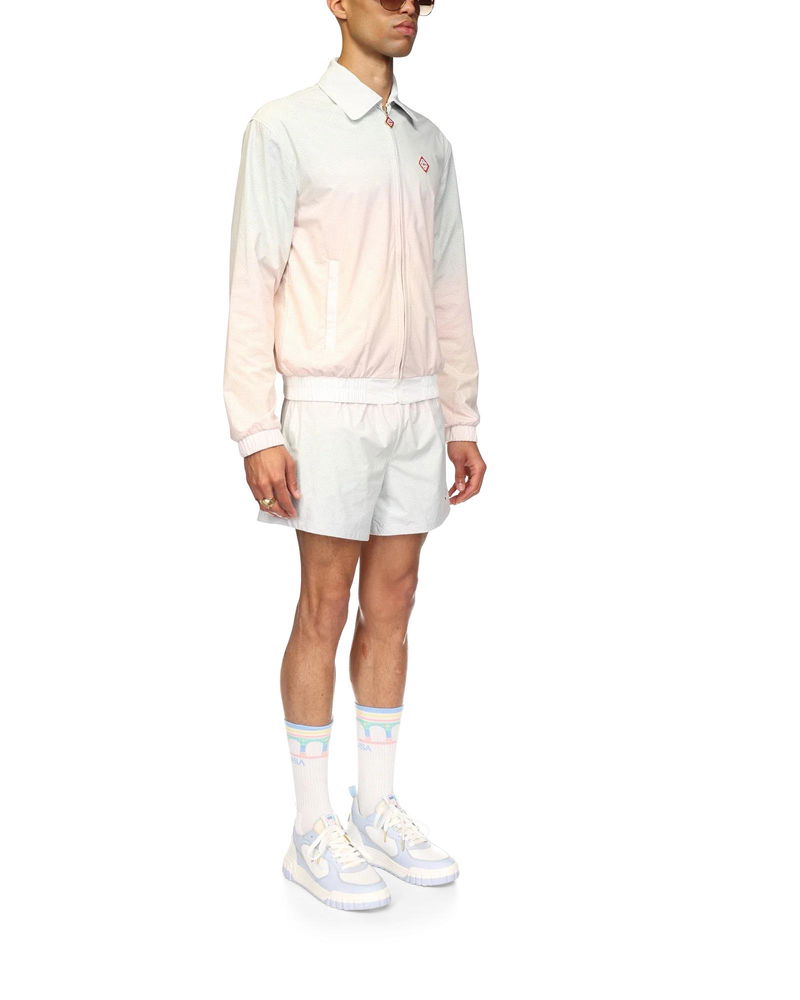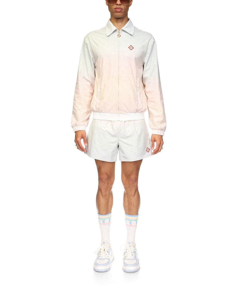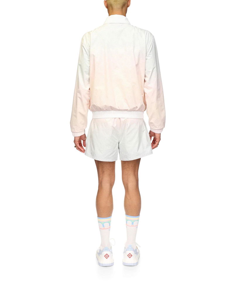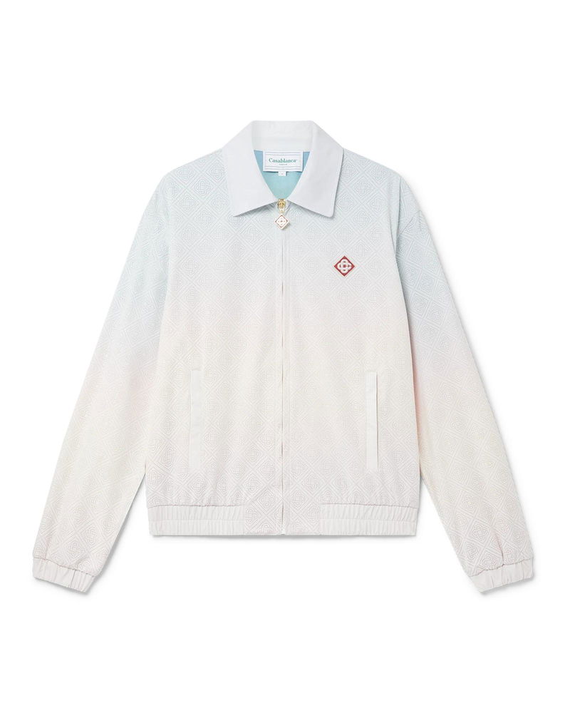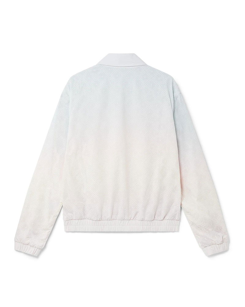 The laser detail track jacket is a long-sleeve sportswear design featuring the house's signature diamond monogram laser-cut detailing. Crafted from our signature lightweight taffeta fabric, complete with a collar, front zip closure, vertical welt pockets, and elasticated cuffs and hem. Taffeta laser-cut fabric 100% polyester Colour: gradient multicolour Delicate machine wash Fits true to size, take your regular size The model is 186cm/6’1 and is wearing a size M Made in China Gradient Laser Detail Track Jacket, Size XS by Casablanca Paris