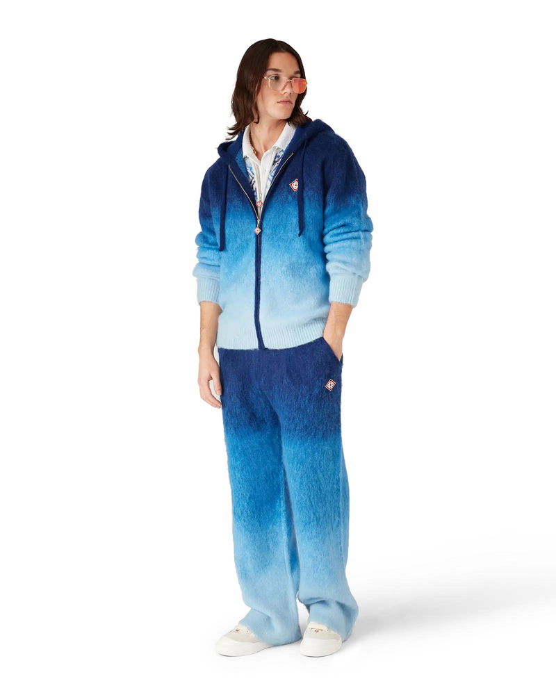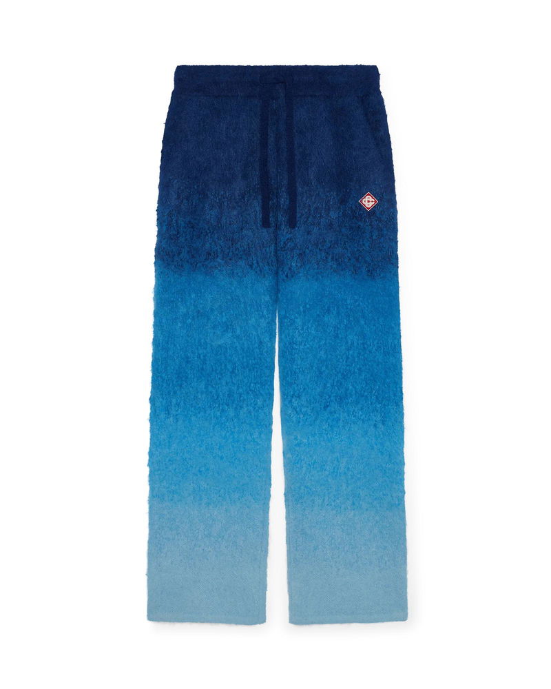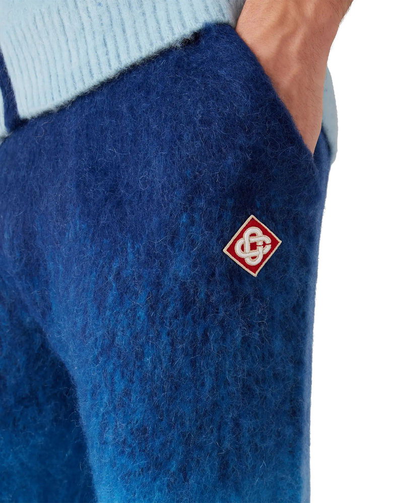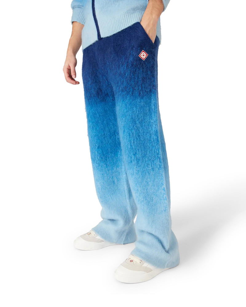 The gradient mohair trousers are a straight-leg design featuring the house's signature diamond logo. Completed with an elasticised waistband, and drawstring fastening. Mohair wool fabric 33% mohair 33% wool 28% polyamide 6% elastane Diamond logo patch Colour: blue gradient Specialised dry clean only Made in China The model is 187cm/6'1 and is wearing a size M Relaxed fit Gradient Mohair Trousers in Blue, Size Small by Casablanca Paris