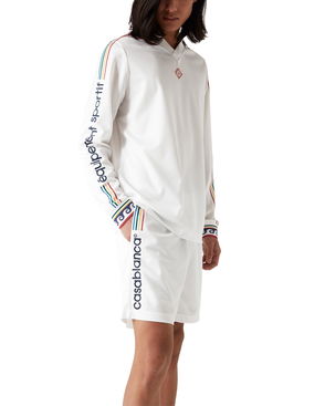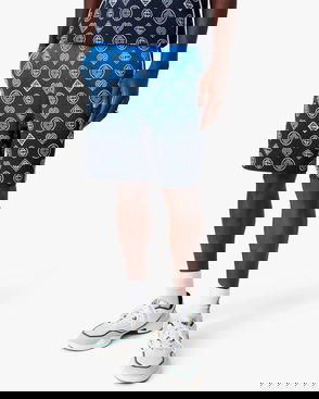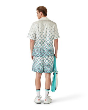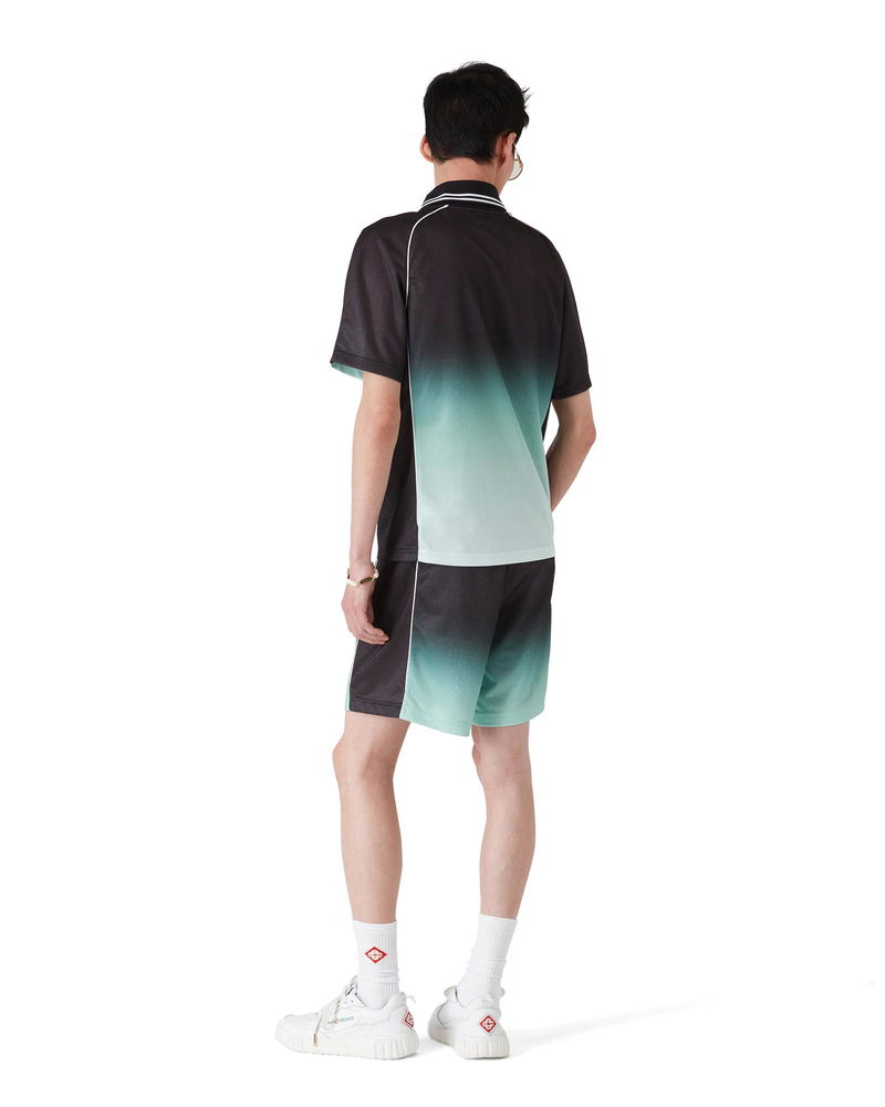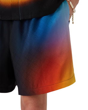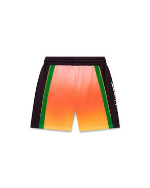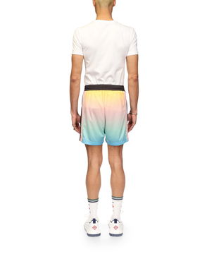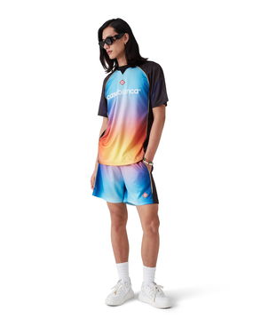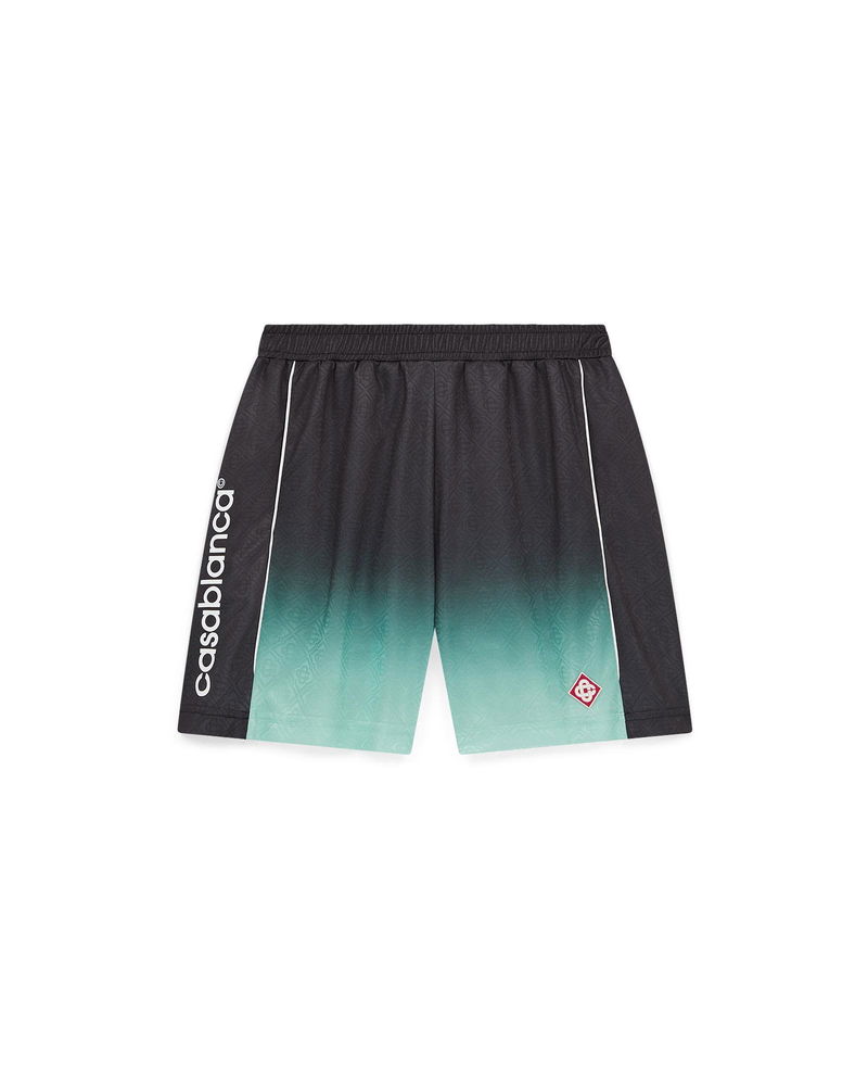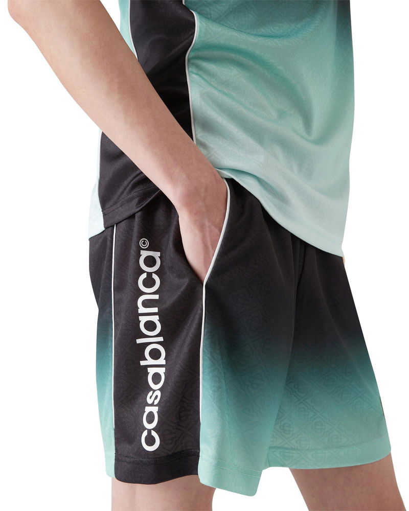 The gradient monogram jacquard football shorts are a sportswear design crafted from a gradient printed fabric incorporating the house's signature Casablanca logo down the side. Completed with an elasticated waistband with drawstring fastening and in-seam side pockets.