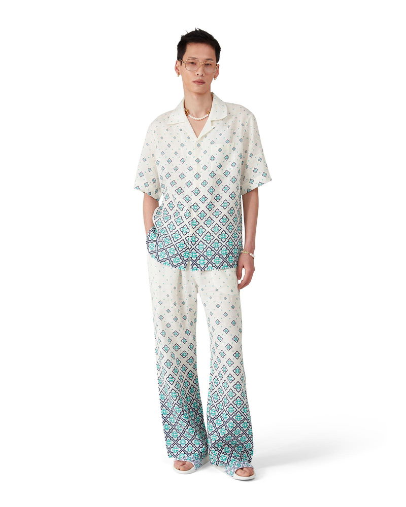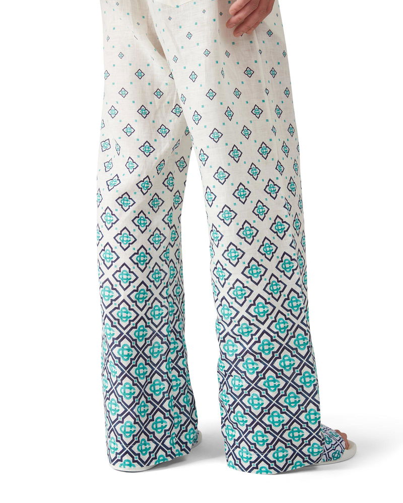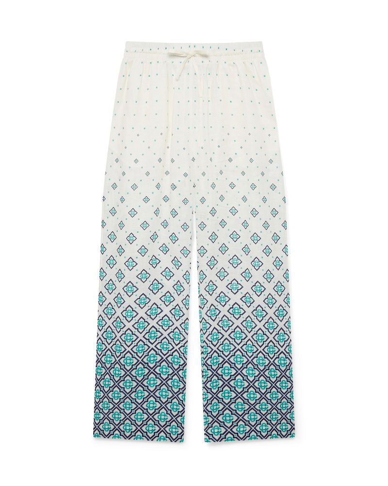 The Gradient Monogram linen trousers are a printed design crafted from linen fabric. Completed with an elasticated waistband with drawstring fastening, in-seam side pockets, and a patch back pocket. Designed to be worn with its matching Gradient Monogram linen shirt. Linen fabric 100% linen Degrade monogram print Specialised dry clean only Made in Italy The model is 187cm/6'1 and is wearing a size M Exclusive to casablancaparis. com, our flagship stores and selected retailers Gradient Monogram Linen Trousers, Size Medium by Casablanca Paris