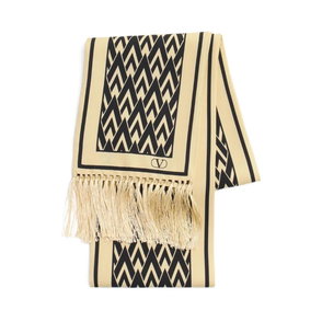 The Gradient Monogram medium silk scarf is a printed design crafted from a silk twill fabric. Completed with a blue and white stripe border. Silk twill fabric 100% silk Degrade monogram print Specialised dry clean only Made in Italy Measures: 52cm x 52cm Exclusive to casablancaparis. com, our flagship stores and selected retailers Gradient Monogram Medium Silk Scarf by Casablanca Paris