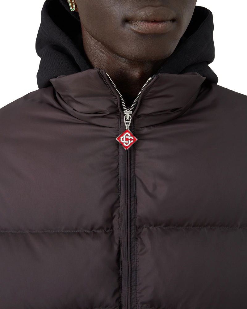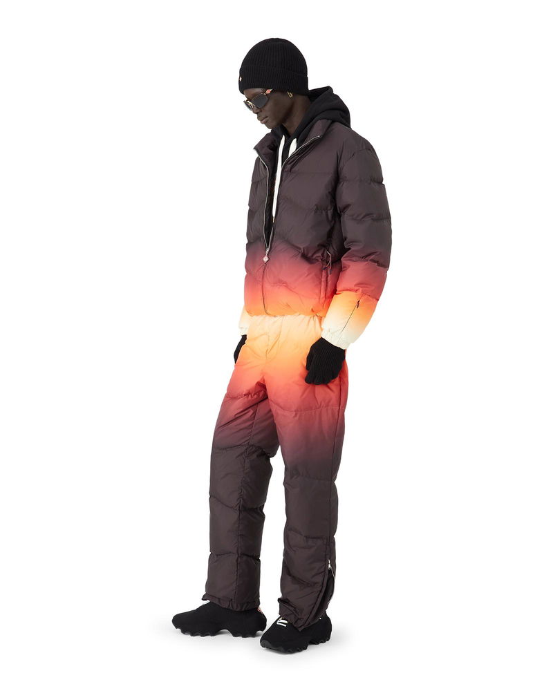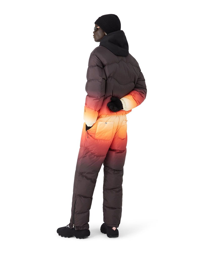 The ski puffer jacket is a refined outerwear design crafted from gradient printed down quilted puffer fabric, featuring a multicolour gradient inspired by dramatic sunsets over Japan's snow-covered mountain ranges. Drawing from breathtaking moments when vibrant skies transform above rural winter landscapes. Completed with a zip closure with the house's signature diamond logo zipper tab, front pockets with zip closure, ski pass pocket on the left arm and elasticised hem and cuffs.