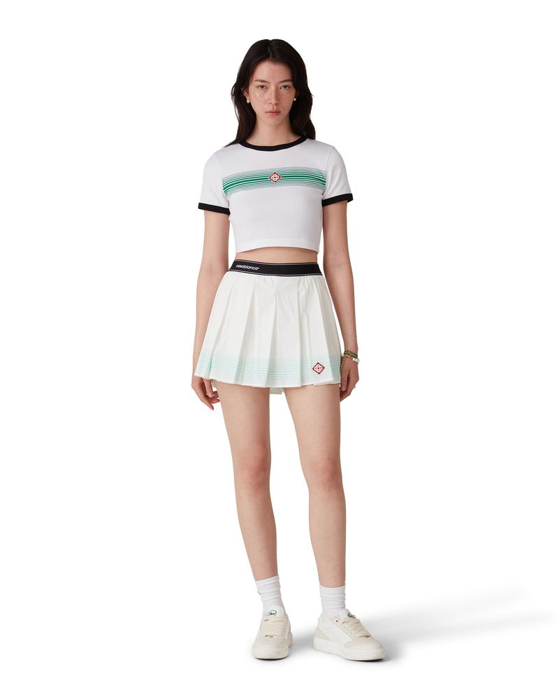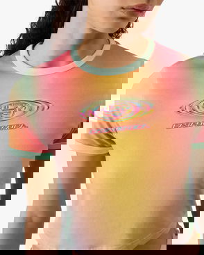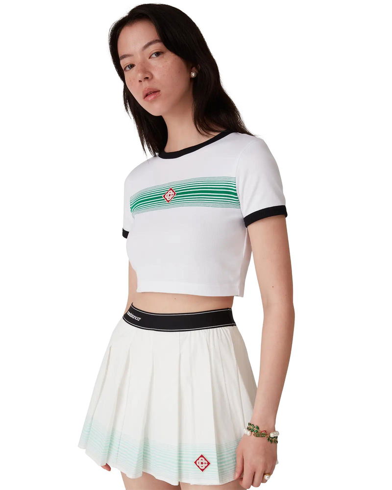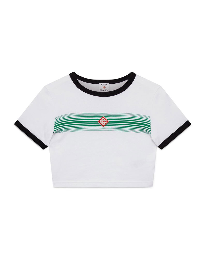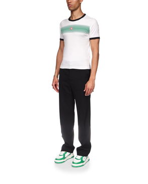 The gradient stripe ringer t-shirt is a fitted design featuring the house's diamond logo appliqué. Crafted from cotton fabric and finished with a classic crew neck, and contrast rib collar and cuffs.