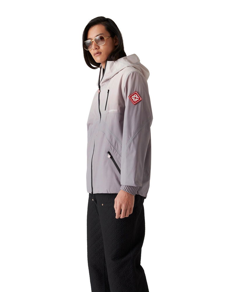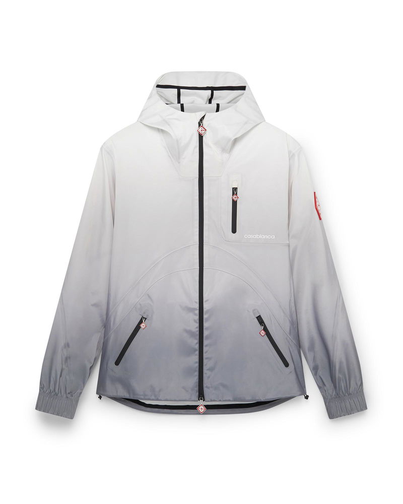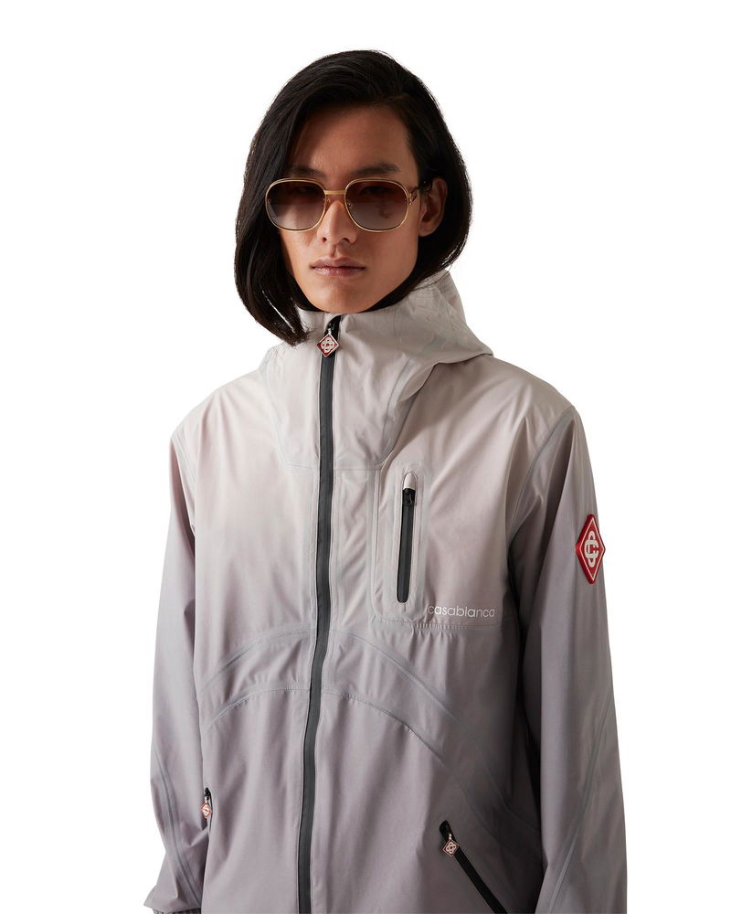 The Gradient waterproof jacket is a long-sleeve hooded design crafted from a gradient waterproof fabric. Completed with a hood, zip closure, front pockets, a breast pocket, adjustable cuffs, and the house's diamond monogram. Gradient waterproof fabric Main: 100% polyester Colour: Grey Gradient print Specialised dry clean only Fits true to size, take your regular size The model is 186cm/6'1 and is wearing a size M. Made in China Gradient Waterproof Jacket, Size XS by Casablanca Paris