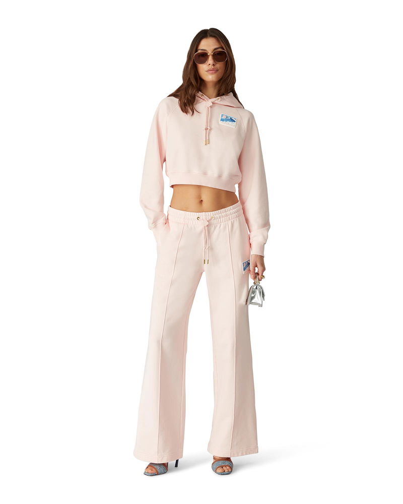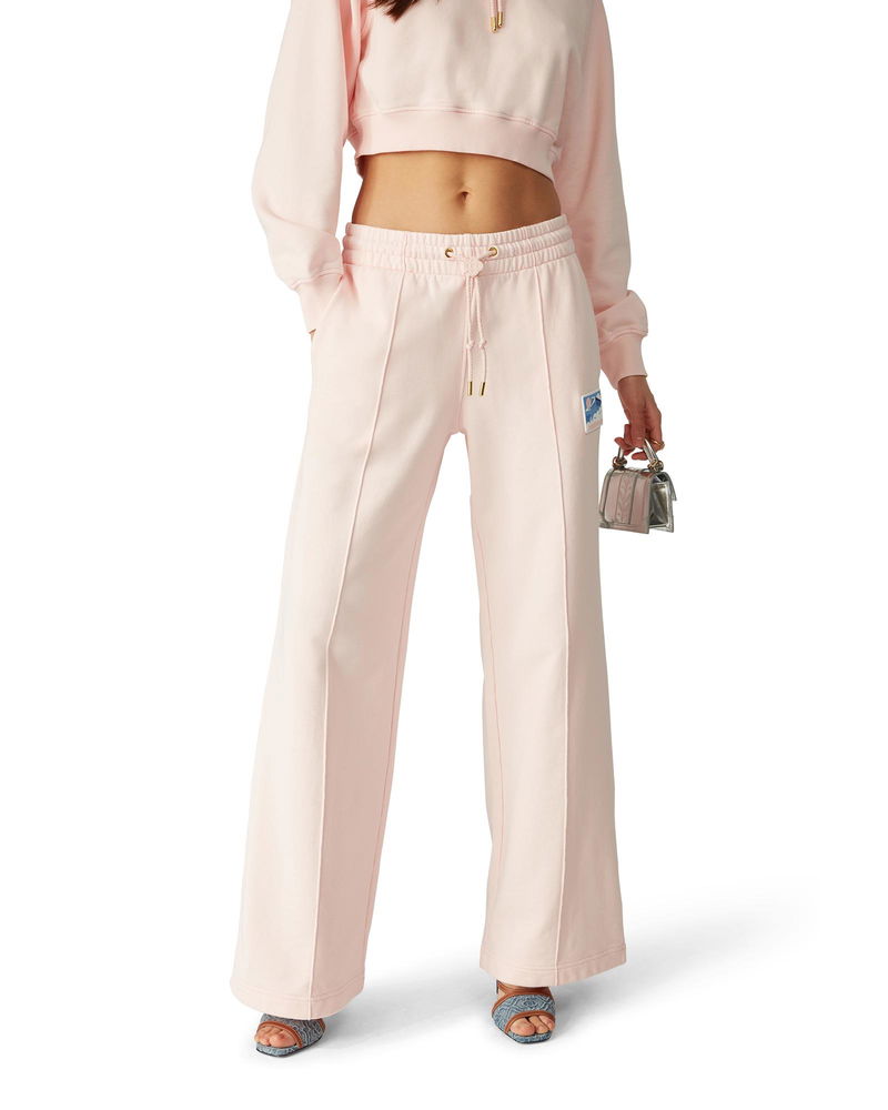 The Greek temple sweatpants are a straight-leg elevated sportswear design crafted from organic cotton fabric. Completed with an elasticated waistband, gold-plated eyelets, gold-tipped drawstring fastening, in-seam side pockets, a patch back pocket, pin-tuck seams, and a silicon patch.