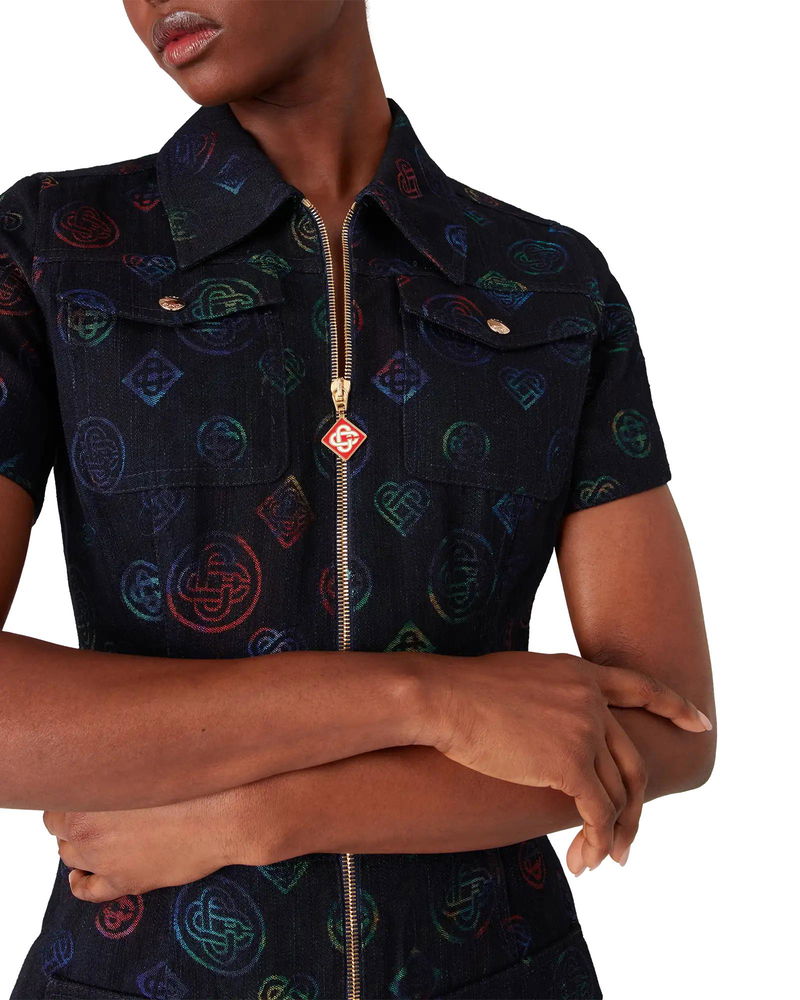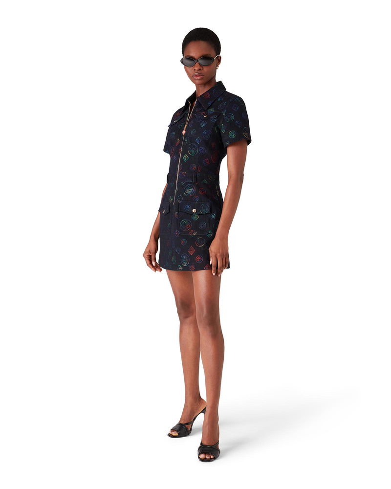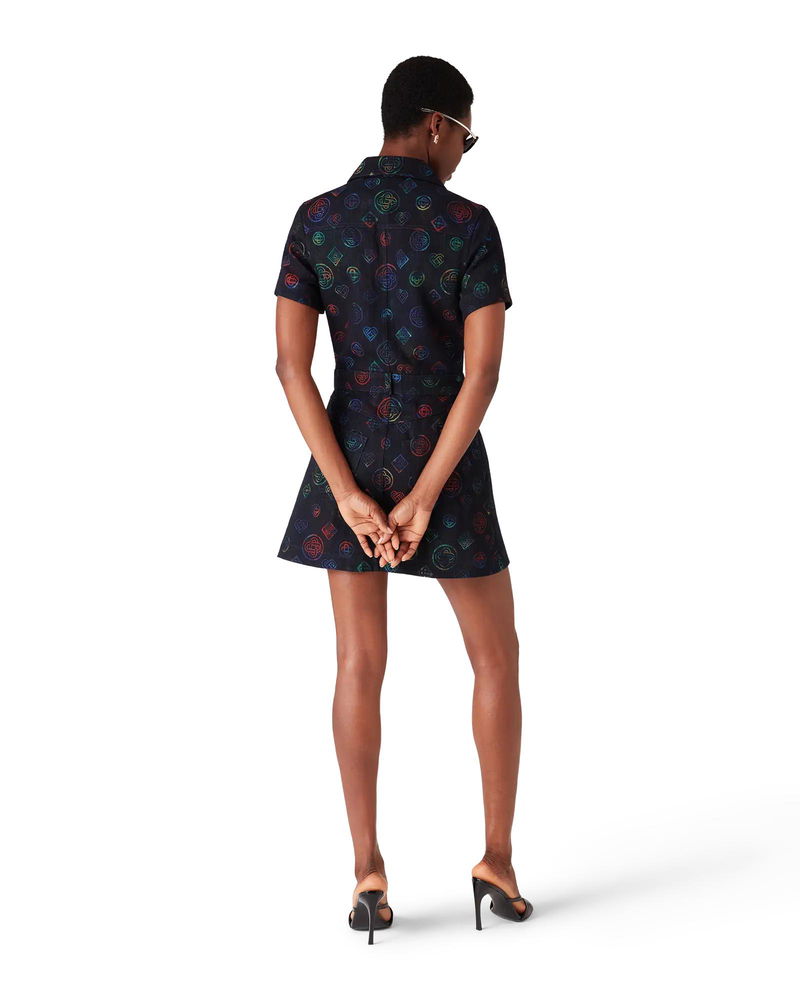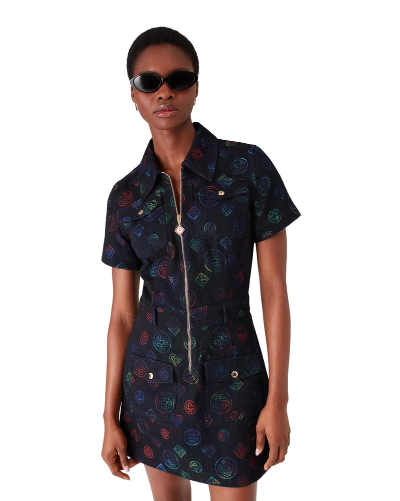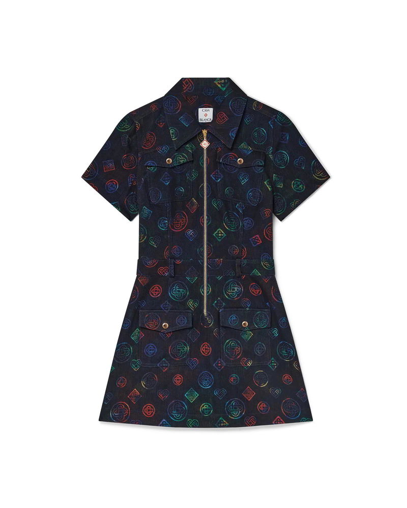 The Heatmap Monogram denim dress is a short-sleeve A-line mini-style dress, crafted from cotton denim fabric featuring the season's distinctive heatmap artwork.