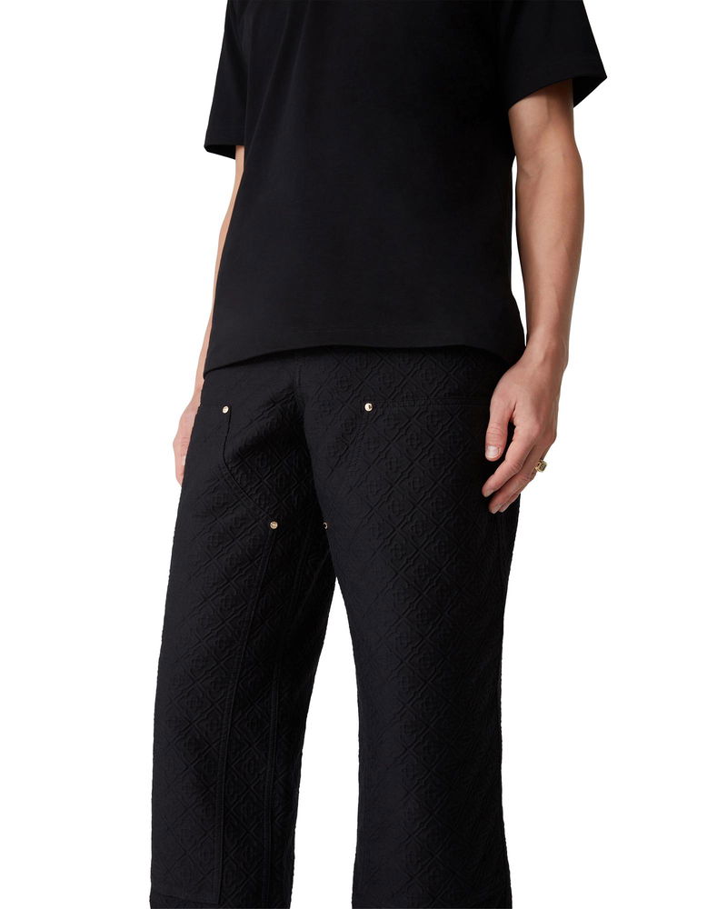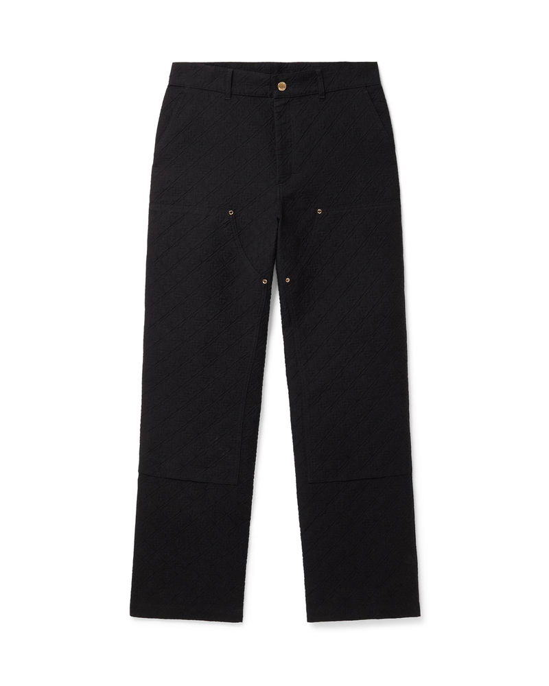 The jacquard cargo trousers are a straight-leg design crafted from jacquard cotton fabric and feature the house's signature diamond monogram. Completed with a panel on the thighs, gold-plated hardware, slanted pockets, back patch pockets, zip closure and belt loops. Jacquard cotton fabric Main: 79% cotton 15% polyester 6% polyamide Lining: 100% cotton Colour: black Specialised dry clean only Made in Portugal Model is 185cm/6'1 and is wearing a size M Jacquard Cargo Trousers, Size Small by Casablanca Paris