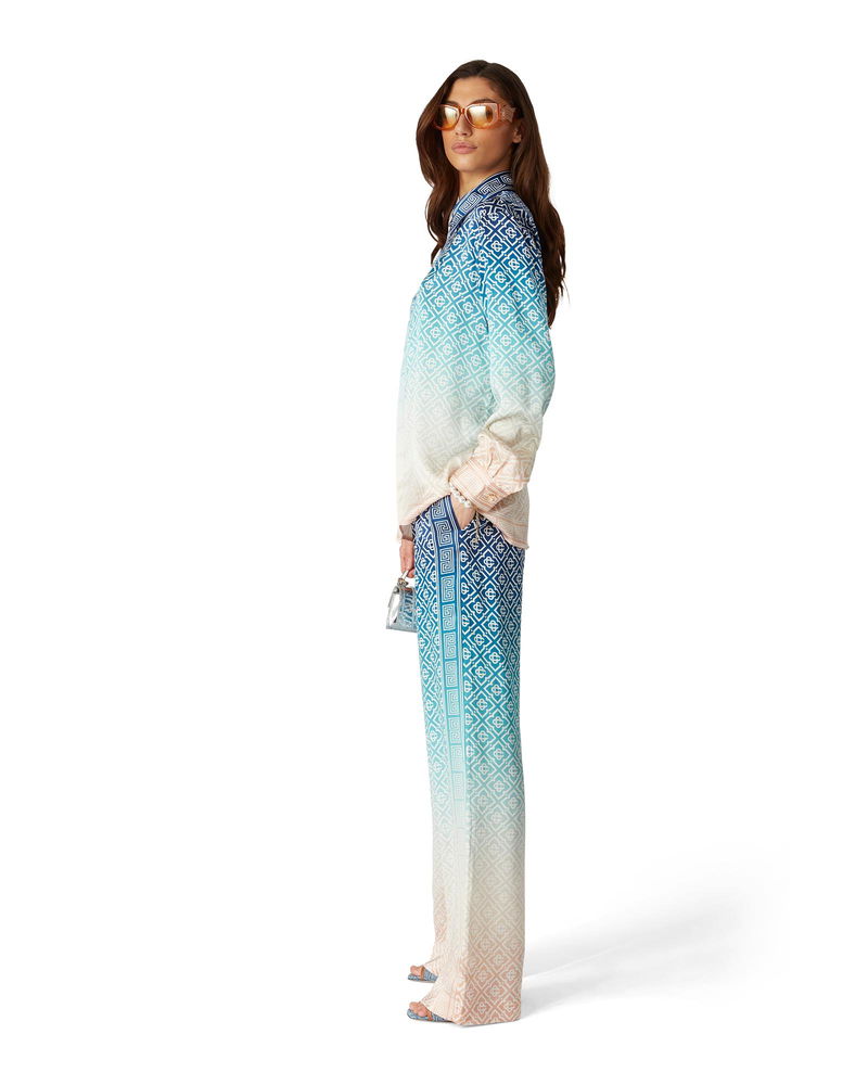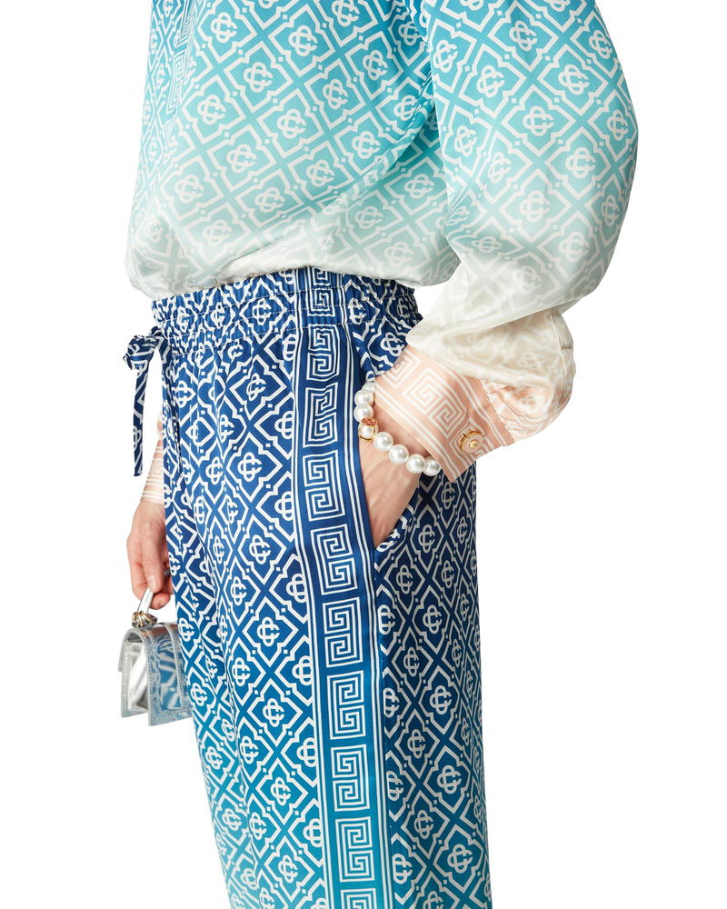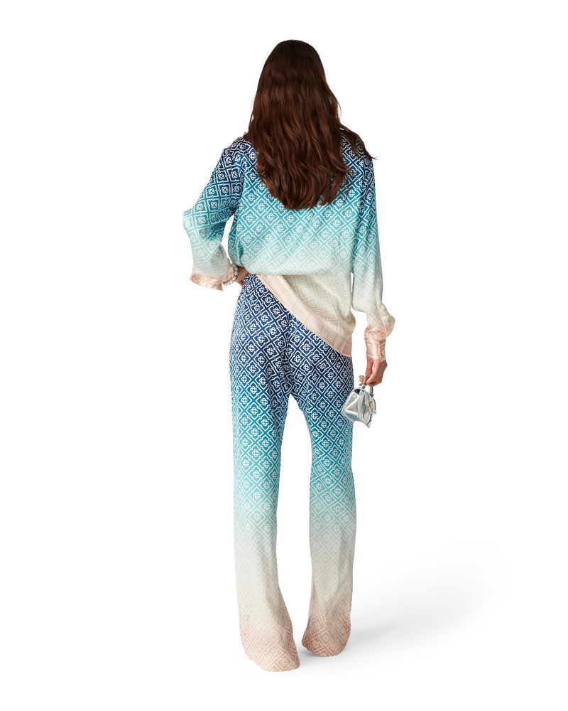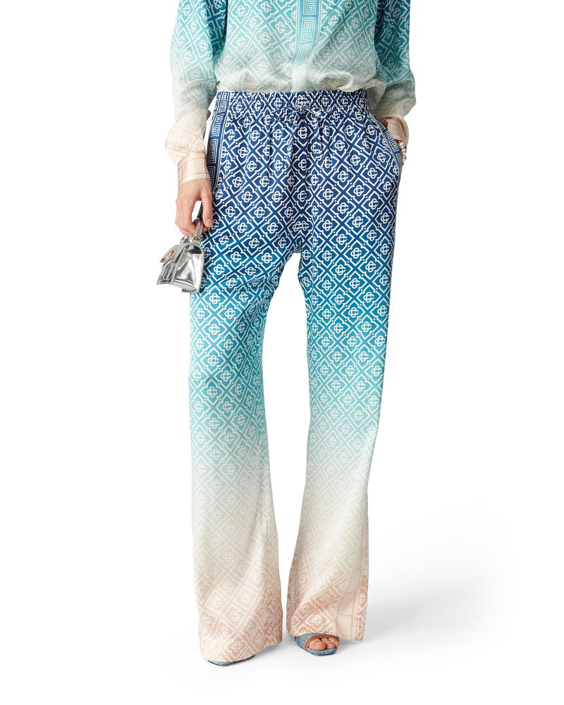 The jacquard gradient silk trousers are an all-over printed style in the house's signature monogram crafted from silk satin fabric. Completed with an elasticated waistband, in-seam pockets, and a lining.