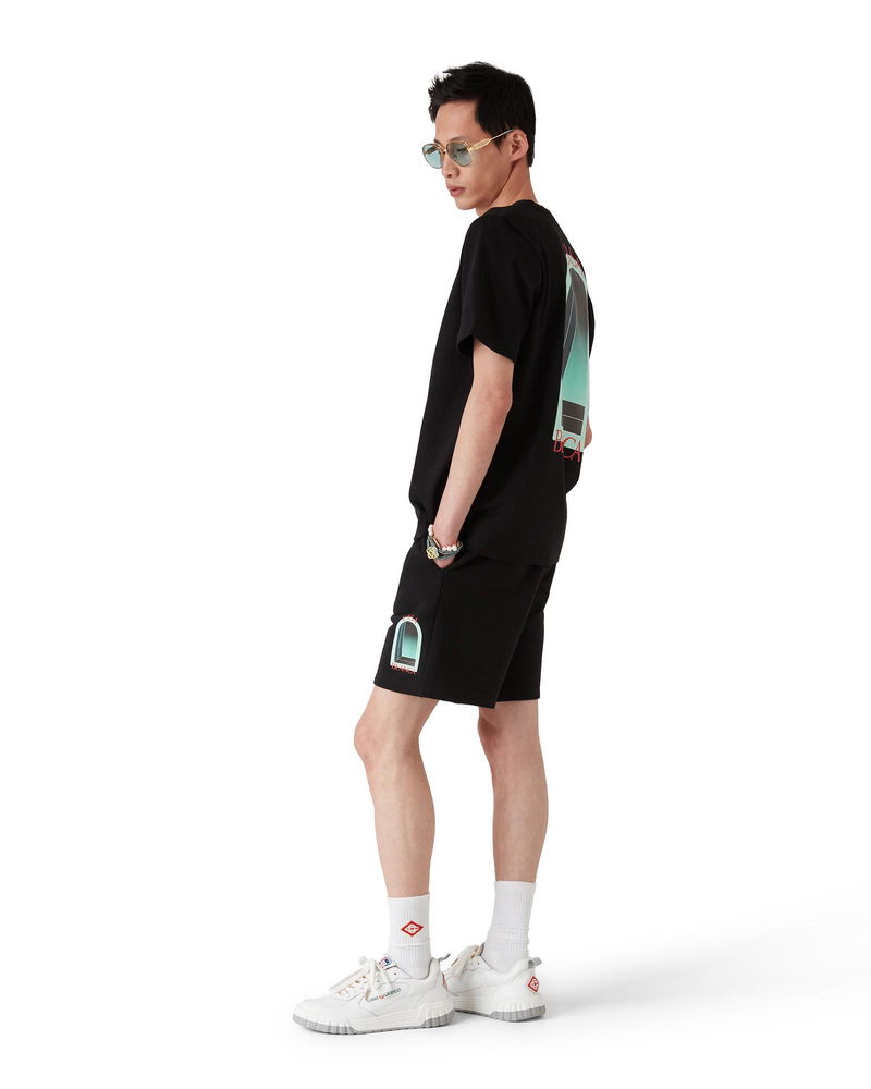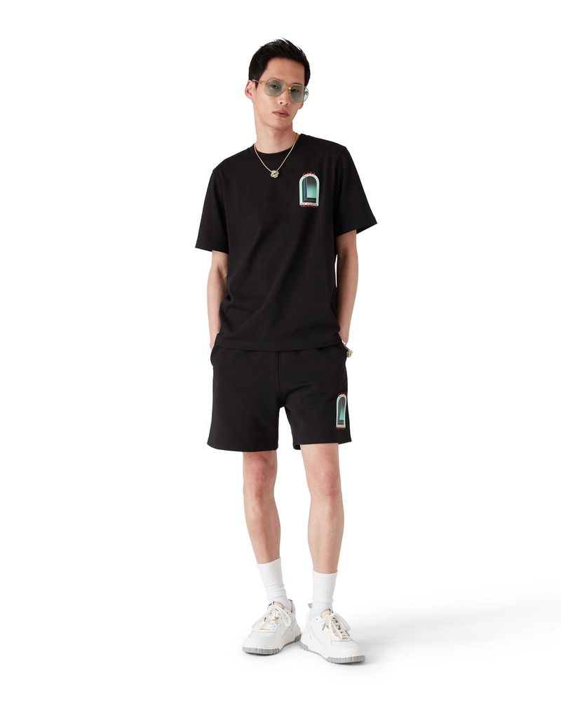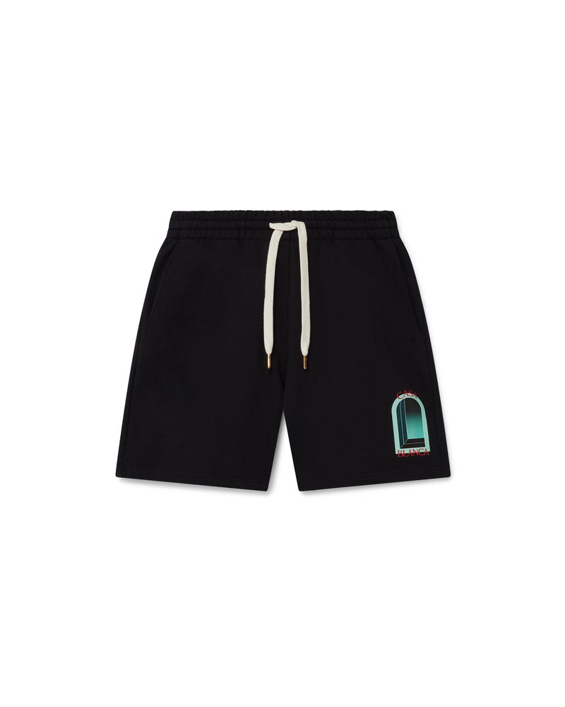 The L'Arche printed sweatshorts are a sportswear design crafted from organic cotton fabric and features the house's seasonal artwork reinterpreted for this season. Completed with an elasticated waistband, gold-tipped drawstring fastening, in-seam pockets, and a back patch pocket. Cotton loopback jersey fabric Main: 100% organic cotton Lining: 100% organic cotton Colour: black Delicate machine wash Made in Portugal The model is 187cm/6'1 and is wearing a size M Exclusive to casablancaparis. com L'Arche Sweatshorts, Size XS by Casablanca Paris