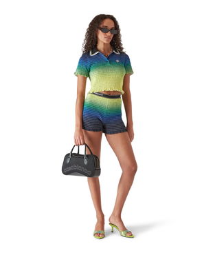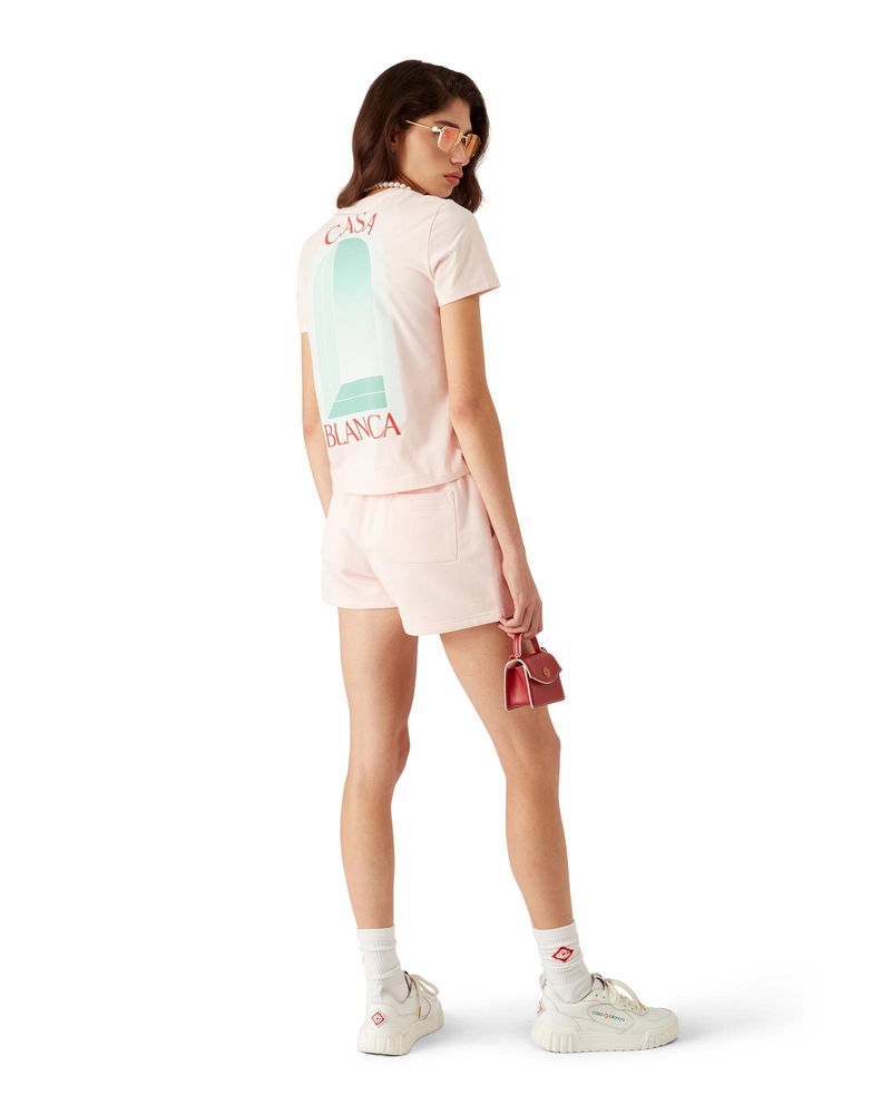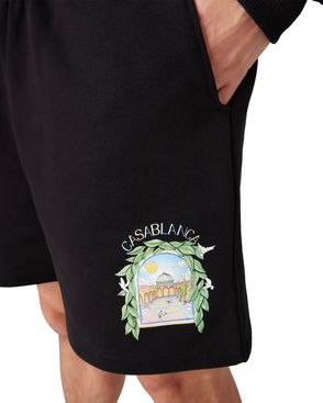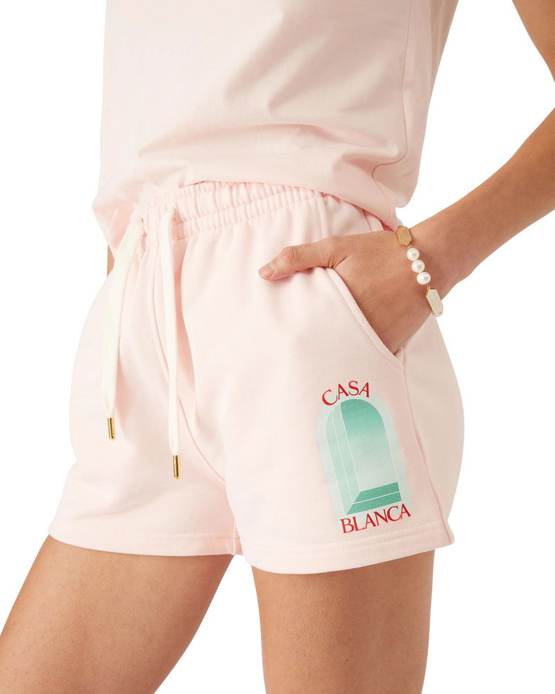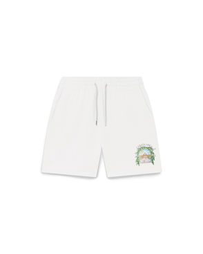 The L'Arche sweatshorts are a sportswear design crafted from organic cotton fabric and features the house's signature artwork reinterpreted for this season. Completed with an elasticised waistband, gold-tipped drawstring fastening, in-seam pockets, and a back patch pocket.