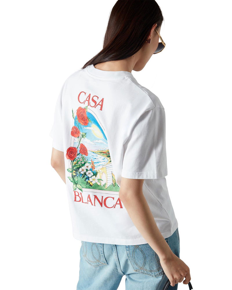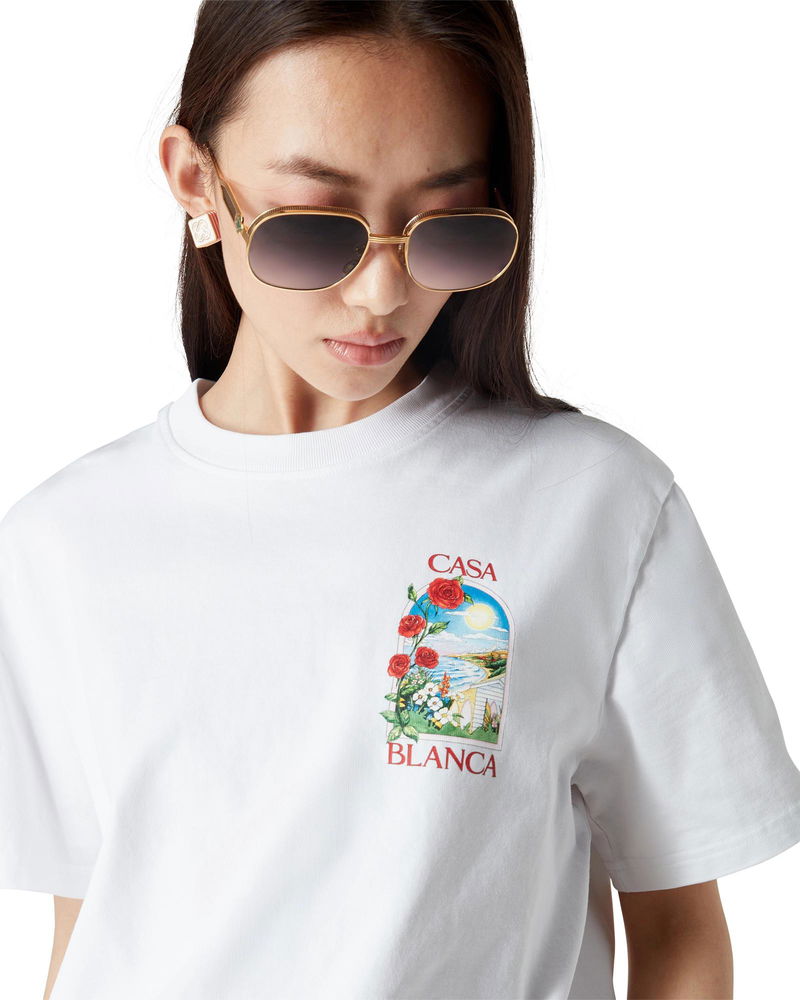 The LA Days t-shirt is a short-sleeve printed design crafted from organic cotton fabric and features signature artwork representing a window into a Malibu daytime landscape.