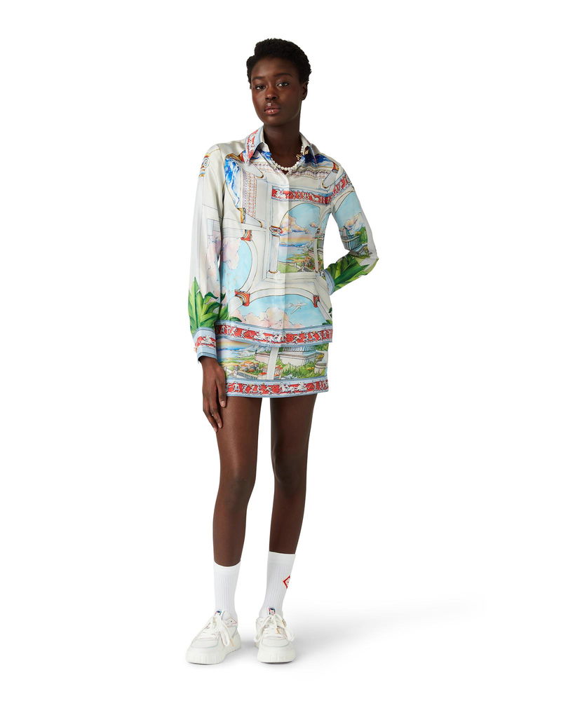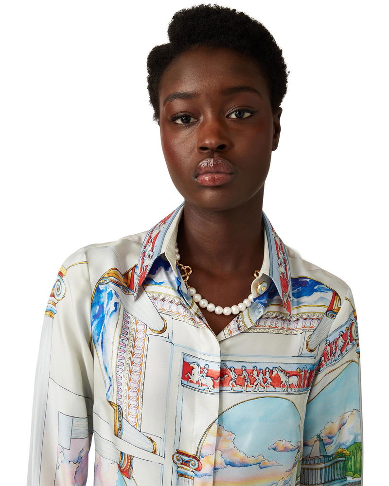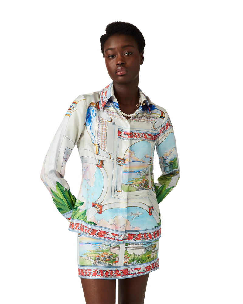 The Le Passage silk shirt is a long-sleeve design crafted from silk twill fabric featuring the house's seasonal artwork - presenting four different dimensions playing on perspectives and architecture.