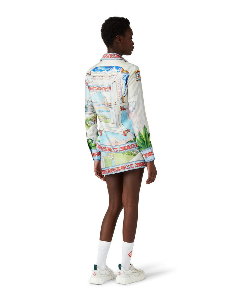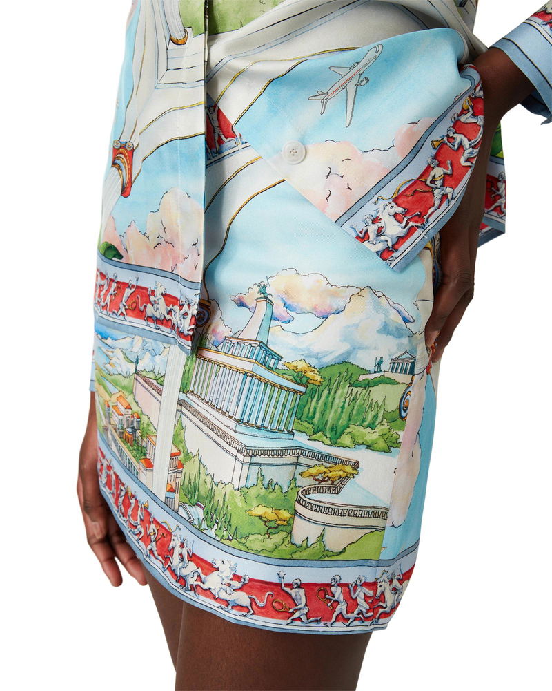The Le Passage mini silk skirt is a short-style A-line design crafted from silk twill fabric featuring the house's seasonal artwork - presenting four different dimensions playing on perspectives and architecture.