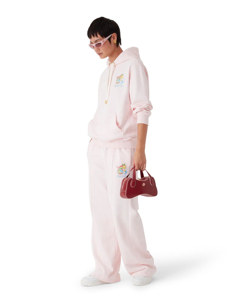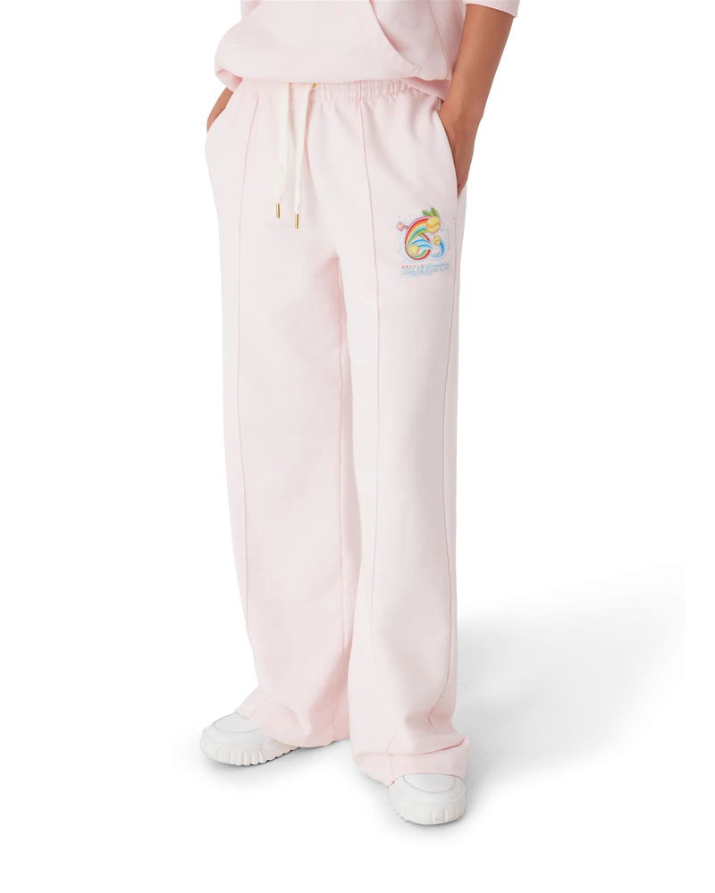 The Manga Tennis Ball open hem sweatpants are a sportswear design crafted from organic cotton fabric featuring seasonal artwork exploring the world of Kawaii and Manga, playing with Casablanca's iconography, using tennis balls as oranges for a fun twist. Completed with an elasticised waistband, gold-plated eyelets, gold-tipped drawstring fastening, pin-tuck seams down the front, in-seam pockets, and a back patch pocket.