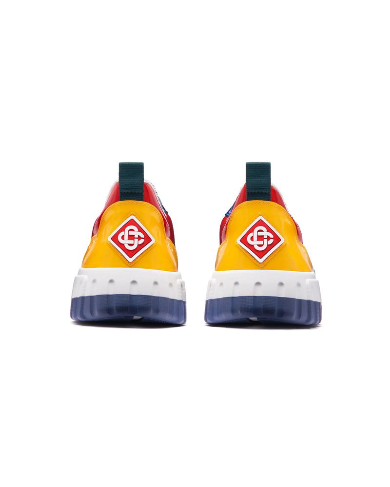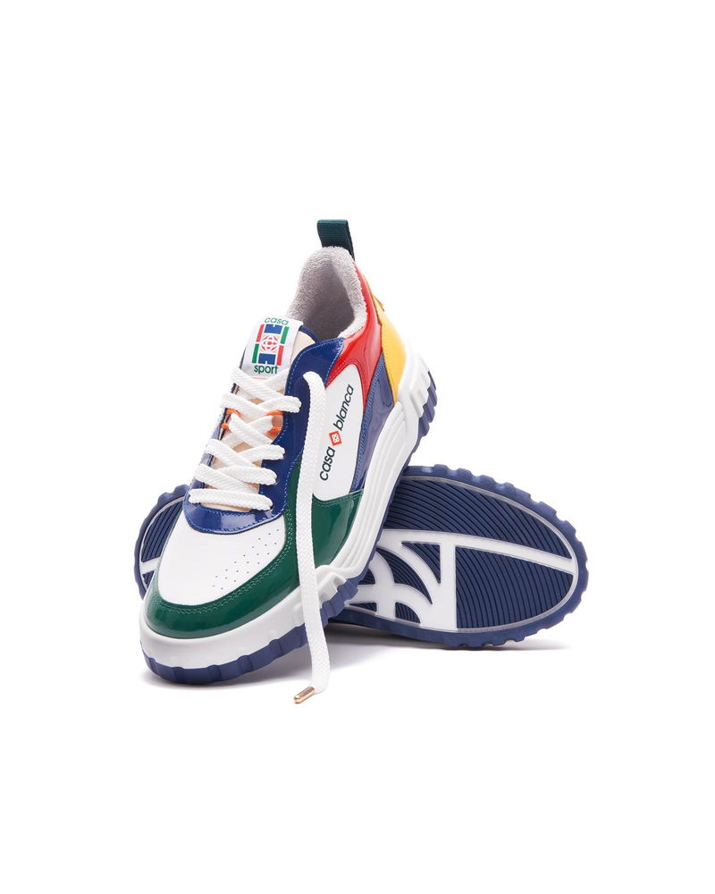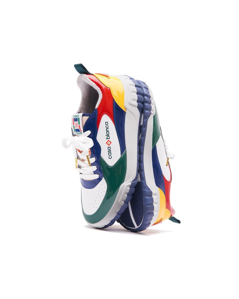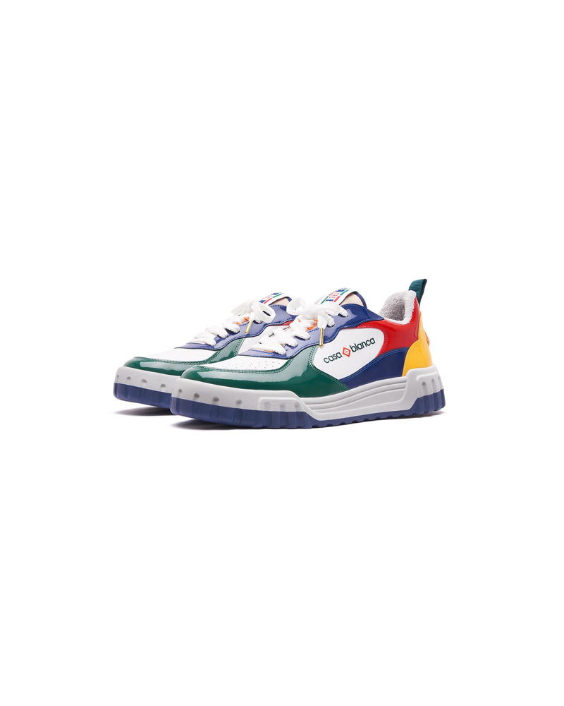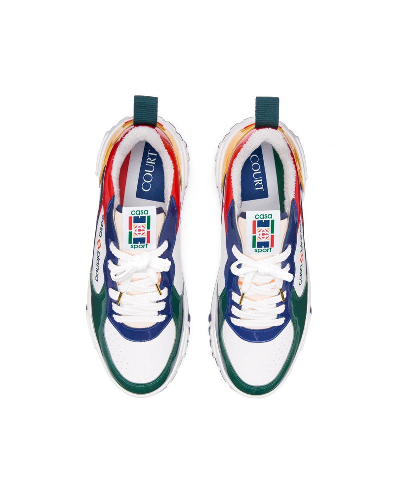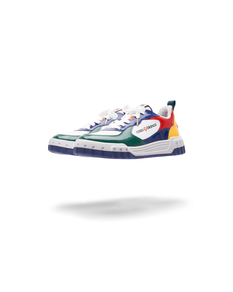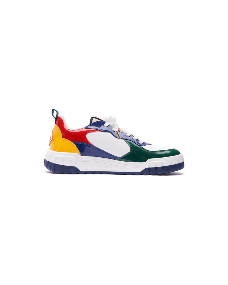 The design language of the Court Sneaker reflects the iconic silhouettes of the 90s. The colours featured throughout the rubber sole are a combination of the refined codes of tennis and classic architecture and create a unified palette throughout the shoe, with the focus on primary colours offset by tennis whites to create a sport focus colour story. Tonal white leather upper Branded Casablanca diamond rubber patch on the heel Silicon Casablanca Sport branding on lateral side Woven Court tongue label Tennis Court inspired outsole realised in tennis inspired primary colours Gold lace tips Customs & Duties Please note that import duties and taxes may be charged on delivery for any customers outside the EU. Please check with your country's customs office to determine your local import duties and taxes before purchasing. You may wish to wear your smaller size if you are in between sizes. Tonal patent leather upper Branded Casablanca diamond rubber patch on the heel Silicon Casablanca branding on lateral side Woven Court tongue label Tennis Court inspired outsole realised in tennis inspired primary colours Gold lace tips Men's Court Multicolour Sneakers in White, Size UK10.5/US11 by Casablanca Paris