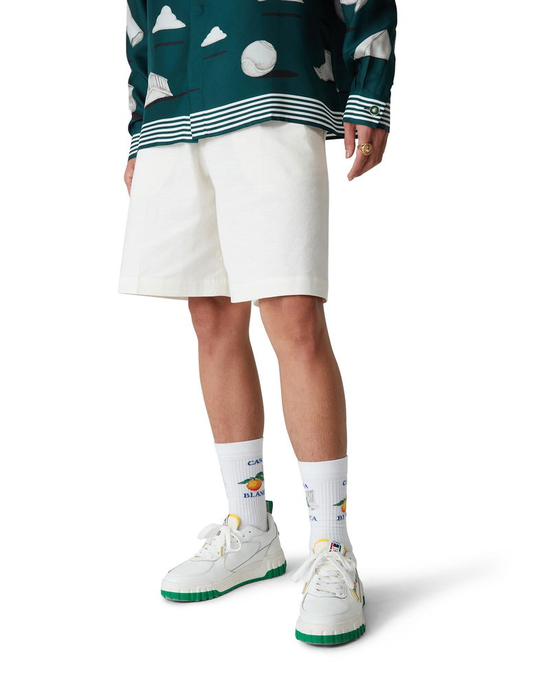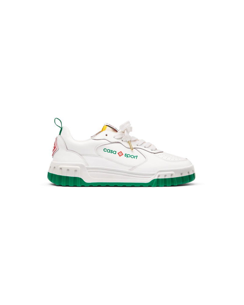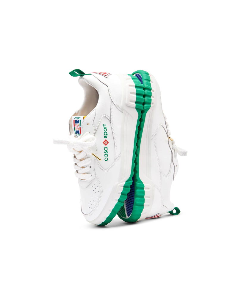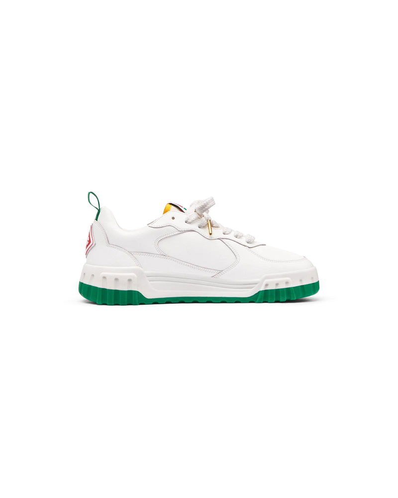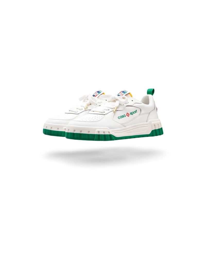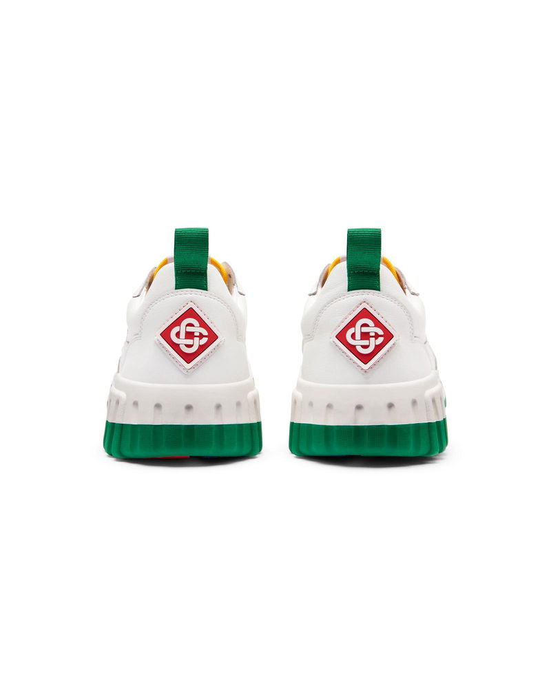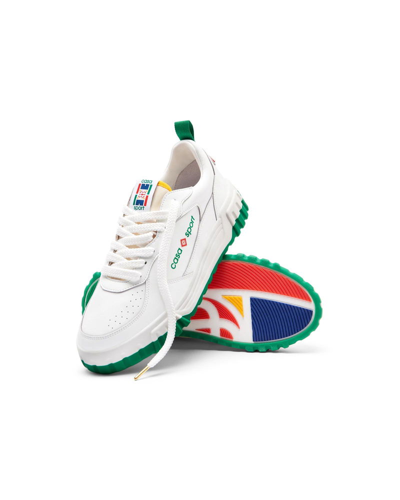 The design language of the Court Sneaker reflects the iconic silhouettes of the 90s. The colours featured throughout the rubber sole are a combination of the refined codes of tennis and classic architecture and create a unified palette throughout the shoe, with the focus on primary colours offset by tennis whites to create a sport focus colour story. Tonal white leather upper. Branded Casablanca diamond rubber patch on the heel. Silicon Casablanca Sport branding on lateral side. Woven Court tongue label. Tennis Court inspired outsole realised in tennis inspired primary colours. Gold lace tips Customs & Duties Please note that import duties and taxes may be charged on delivery for any customers outside the EU. Please check with your country's customs office to determine your local import duties and taxes before purchasing. You may wish to wear your smaller size if you are in between sizes. Men's Court White & Green Sneaker, Size UK7/US7.5 by Casablanca Paris