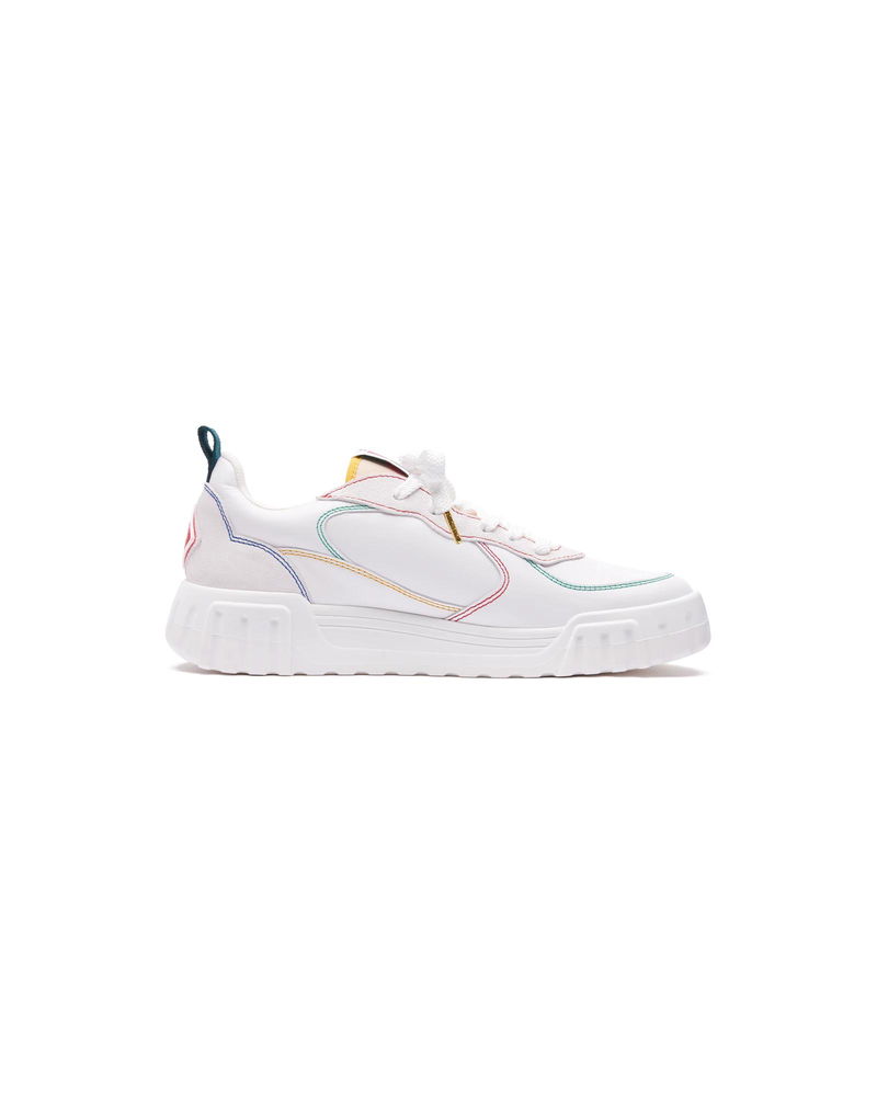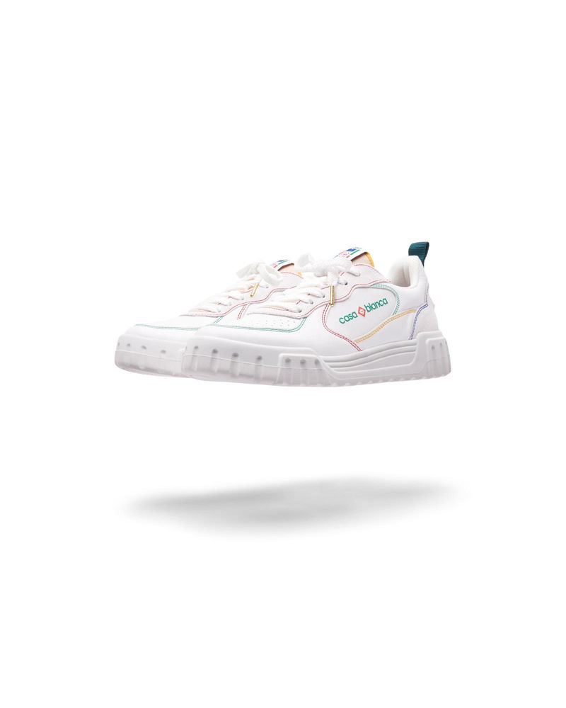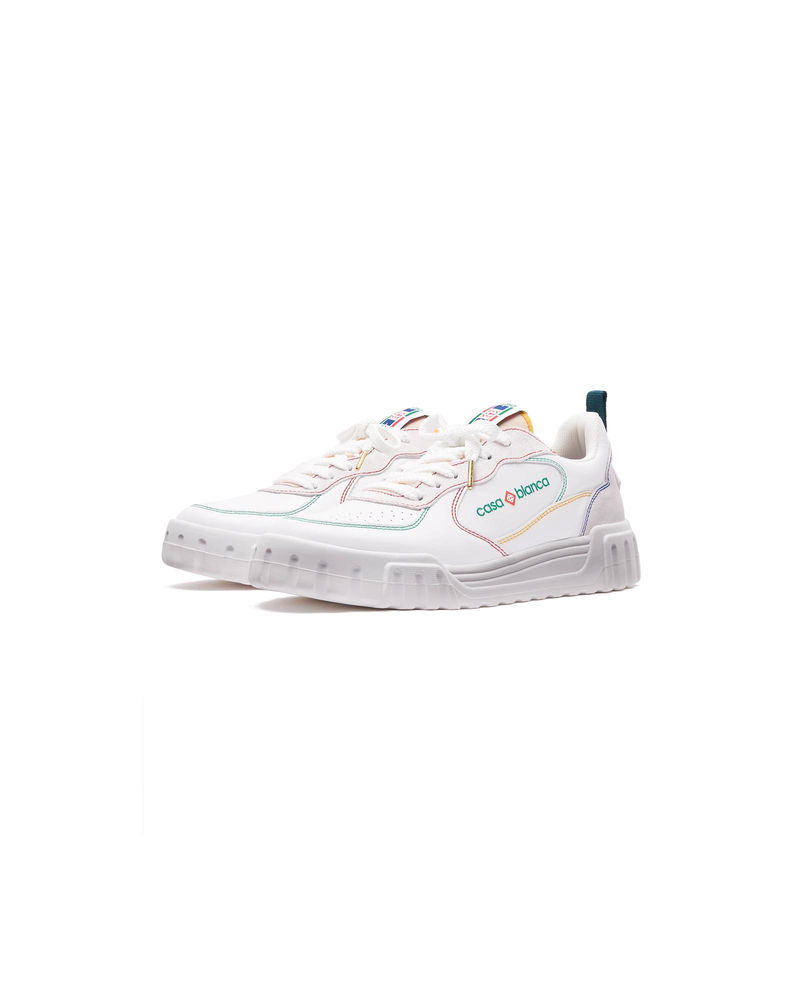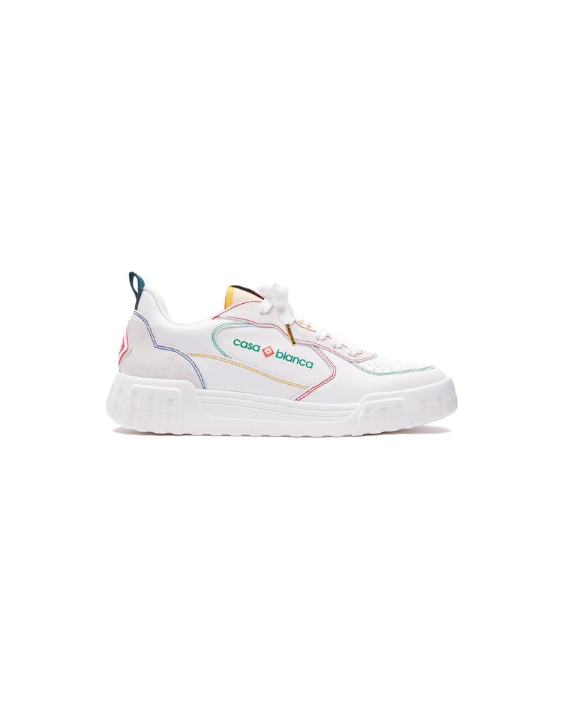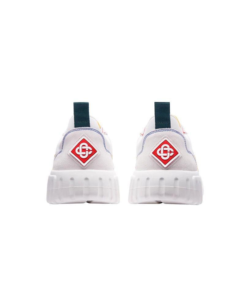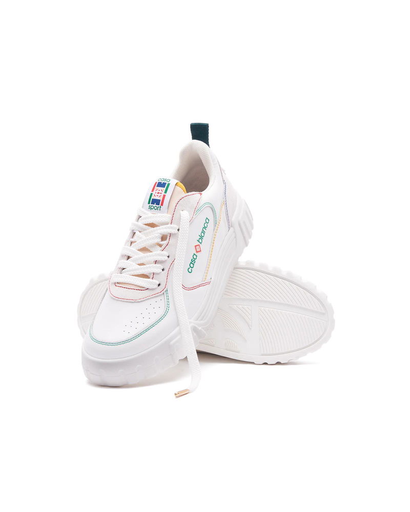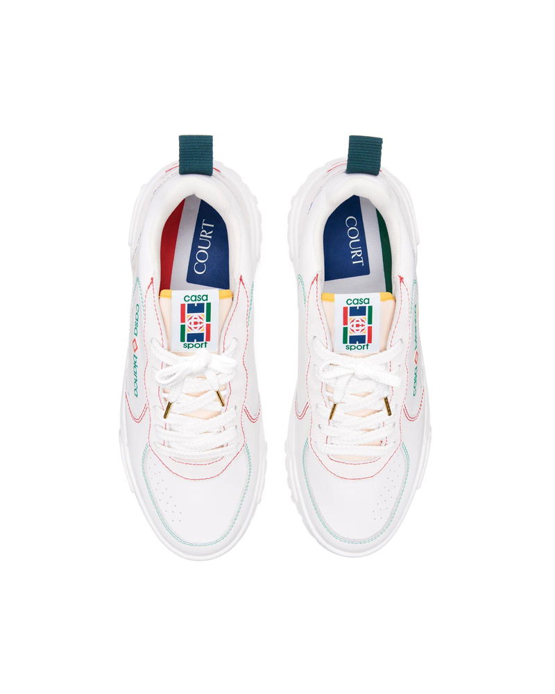 The design language of the Court Sneaker reflects the iconic silhouettes of the 90s. The colours featured throughout the stitching are a combination of the refined codes of tennis and classic architecture and create a unified palette throughout the shoe, with the focus on primary colours offset by tennis whites to create a sport focus colour story. Tonal white leather upper Branded Casablanca diamond rubber patch on the heel Silicon Casablanca Sport branding on lateral side Woven Court tongue label Tennis Court inspired outsole realised in tennis inspired primary colours Gold lace tips Customs & Duties Please note that import duties and taxes may be charged on delivery for any customers outside the EU. Please check with your country's customs office to determine your local import duties and taxes before purchasing. You may wish to wear your smaller size if you are in between sizes. Tonal white leather upper Branded Casablanca diamond rubber patch on the heel Silicon Casablanca branding on lateral side Woven Court tongue label Tennis Court inspired outsole realised in tennis inspired primary colours Gold lace tips Men's Court White & Multicolour Sneakers, Size UK11.5/US12 by Casablanca Paris