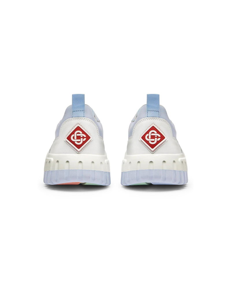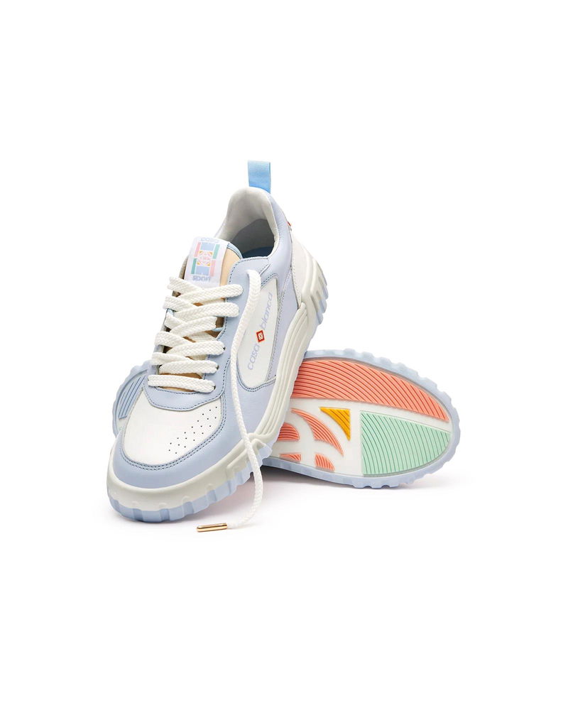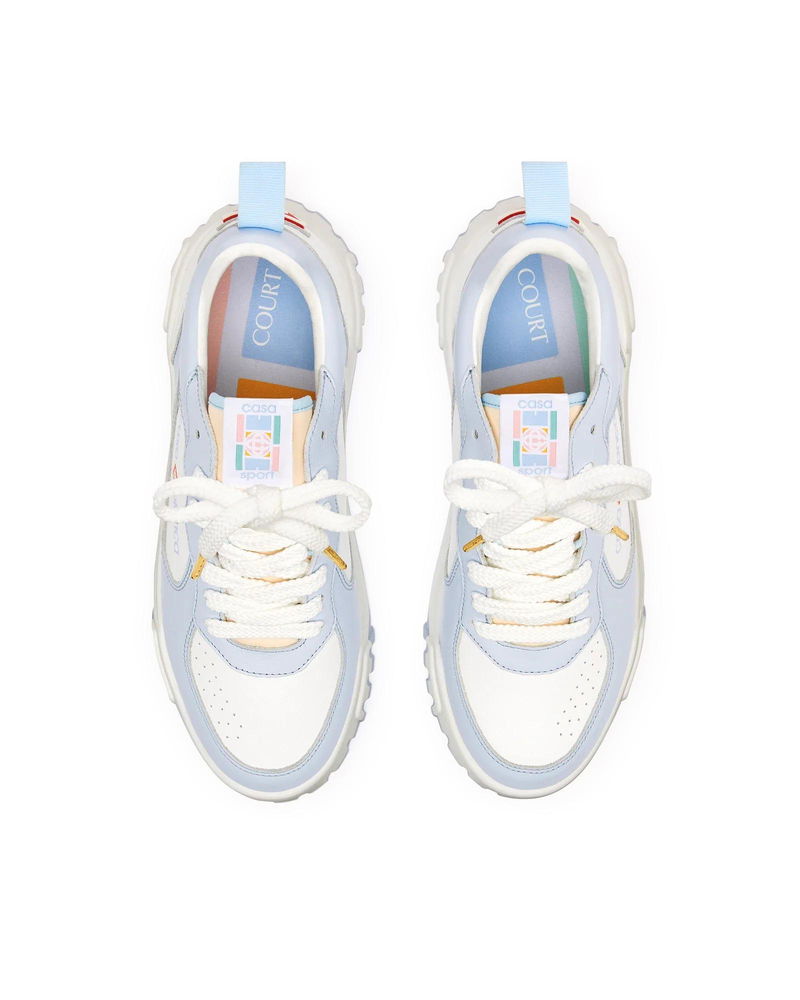 The design language of the Court Sneaker reflects the iconic silhouettes of the 90s. The colours featured throughout the rubber sole are a combination of the refined codes of tennis and classic architecture and create a unified palette throughout the shoe, with the focus on primary colours offset by tennis whites to create a sports focus colour story. The upper of the shoe features integrated, flowing panel lines as a nod to the iconic silhouettes of the 90s. Prominent Casablanca branding throughout is evident, including the brand's signature diamond motif on the heel, silicone wordmark lateral panelling and the woven tennis court motif tongue label and insole, giving rise to its name, The Court. Tonal light blue leather upper Branded Casablanca diamond rubber patch on the heel Silicon Casa Sport branding on lateral side Woven Court tongue label Tennis Court inspired outsole realised in tennis-inspired primary colours Gold lace tips Customs & Duties Please note that import duties and taxes may be charged on delivery for any customers outside the EU. Please check with your country's customs office to determine your local import duties and taxes before purchasing. You may wish to wear your smaller size if you are in between sizes. Men's Court White & Powder Blue Sneaker in Light Blue, Size UK13/US13.5 by Casablanca Paris