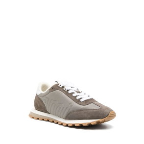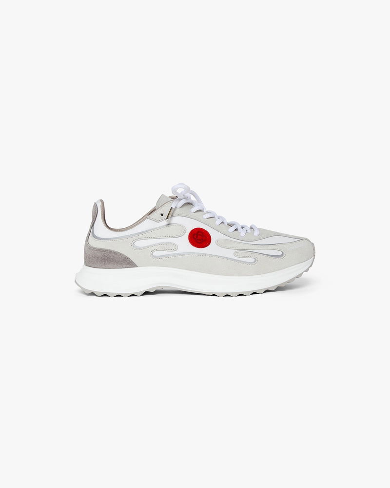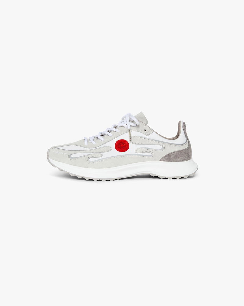The men's Stade grey sneaker takes its name from the Ancient Greek measurement for the distance of a foot race, which later became the word for stadium. The style is inspired by performance running shoes and is a transportation of modern technology from ancient tradition. The sole features sculptured curves, which is a reference to our Atlantis shoe and a staple of Casablanca design. Tonal textile and vegan suede fabric Branded Casablanca diamond rubber patch on the heel Silicon Casablanca Sport branding on lateral side Woven tongue label Gold lace tips Made in Portugal Fits true to size Men's Stade Grey Sneakers, Size 7(US7.5) by Casablanca Paris