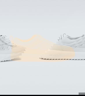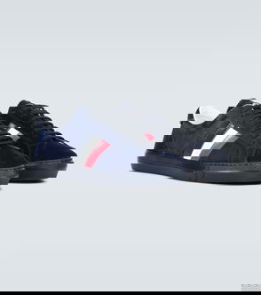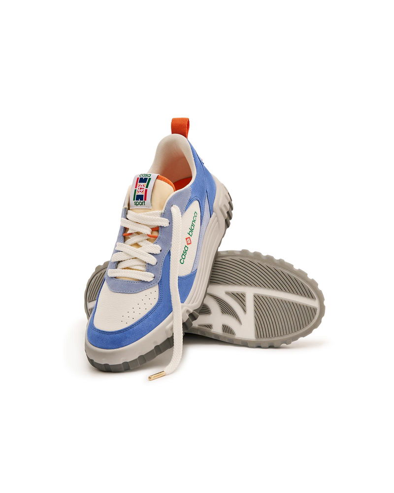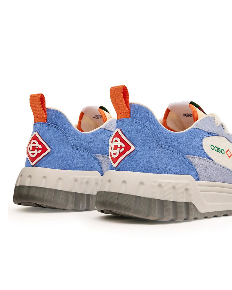 The design language of the Court Sneaker reflects the iconic silhouettes of the 90s. The colours featured throughout the rubber sole are a combination of the refined codes of tennis and classic architecture and create a unified palette throughout the shoe, with the focus on primary colours offset by tennis whites to create a sport focus colour story. The upper of the shoe features integrated, flowing panel lines as a nod to the iconic silhouettes of the 90s. Prominent Casablanca branding throughout is evident, including the brand's signature diamond motif on the heel, silicone wordmark lateral panelling and the woven tennis court motif tongue label and insole, giving rise to its name, The Court. Brown suede leather upper Branded Casablanca diamond rubber patch on the hee Silicon Casablanca Sport branding on lateral side Woven Court tongue label Tennis Court inspired outsole realised in tennis inspired primary colours Gold lace tips Men's White & Blue Court Sneaker, Size 7(US7.5) by Casablanca Paris