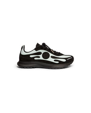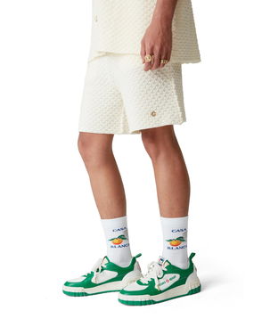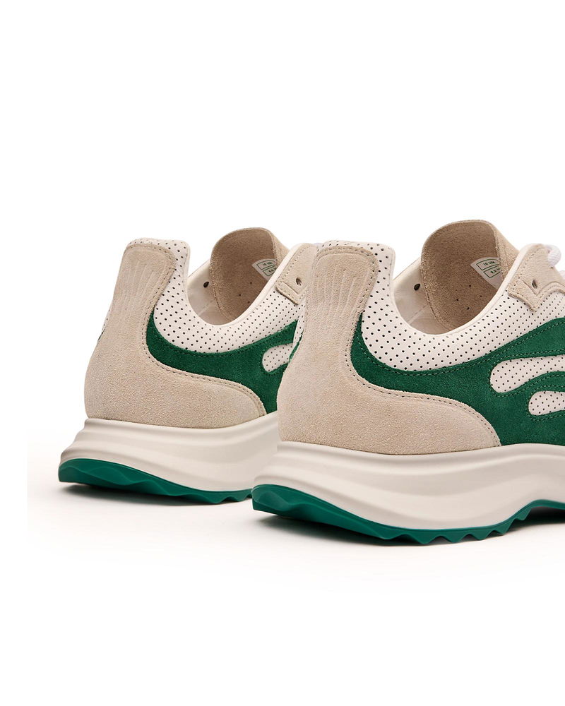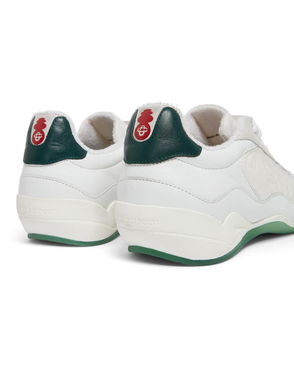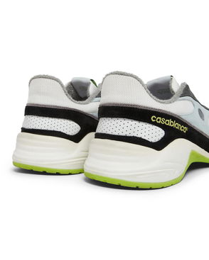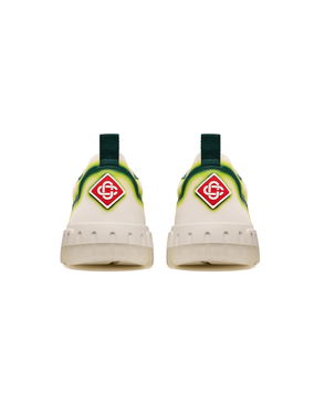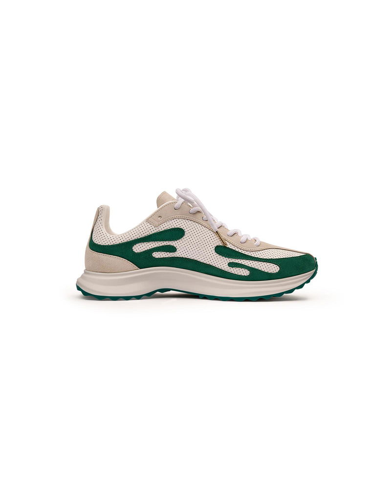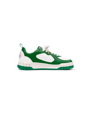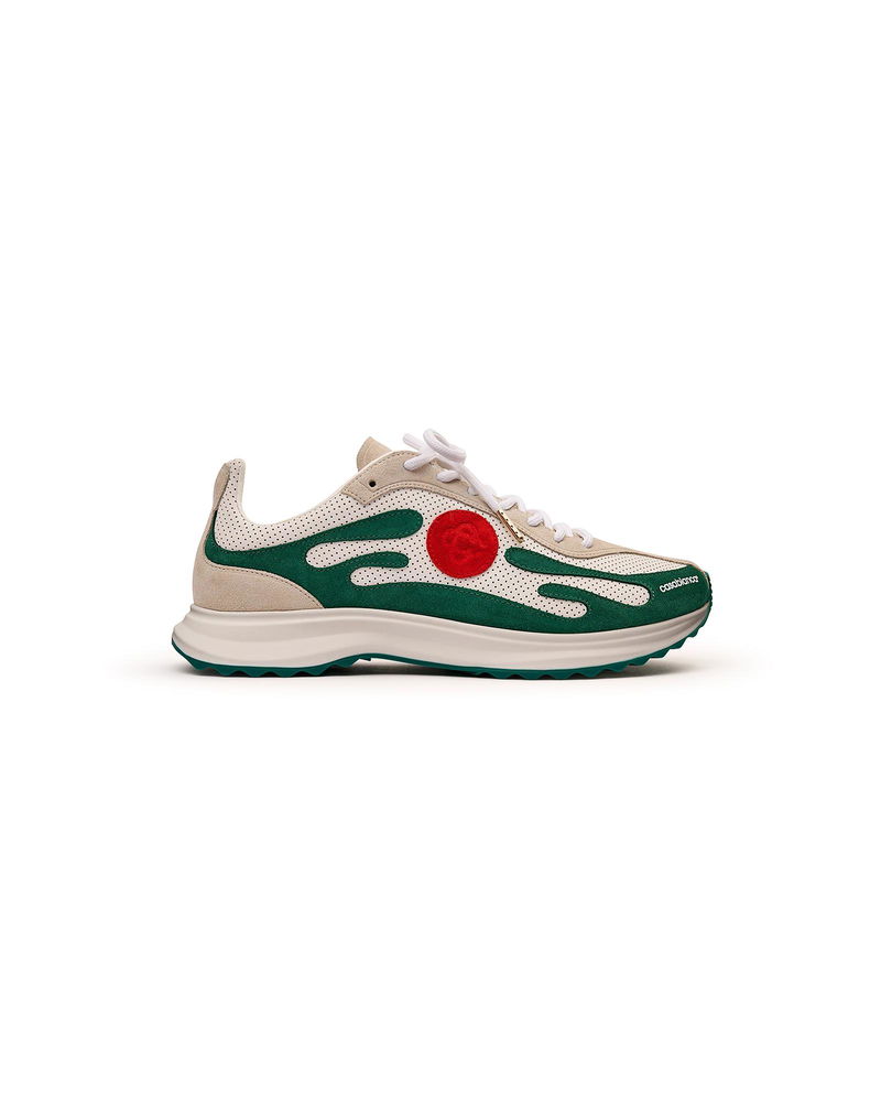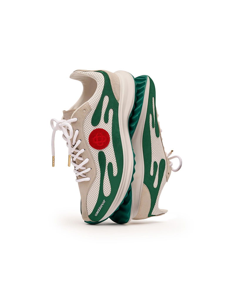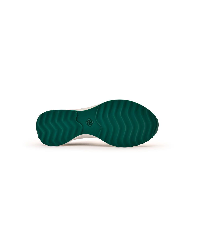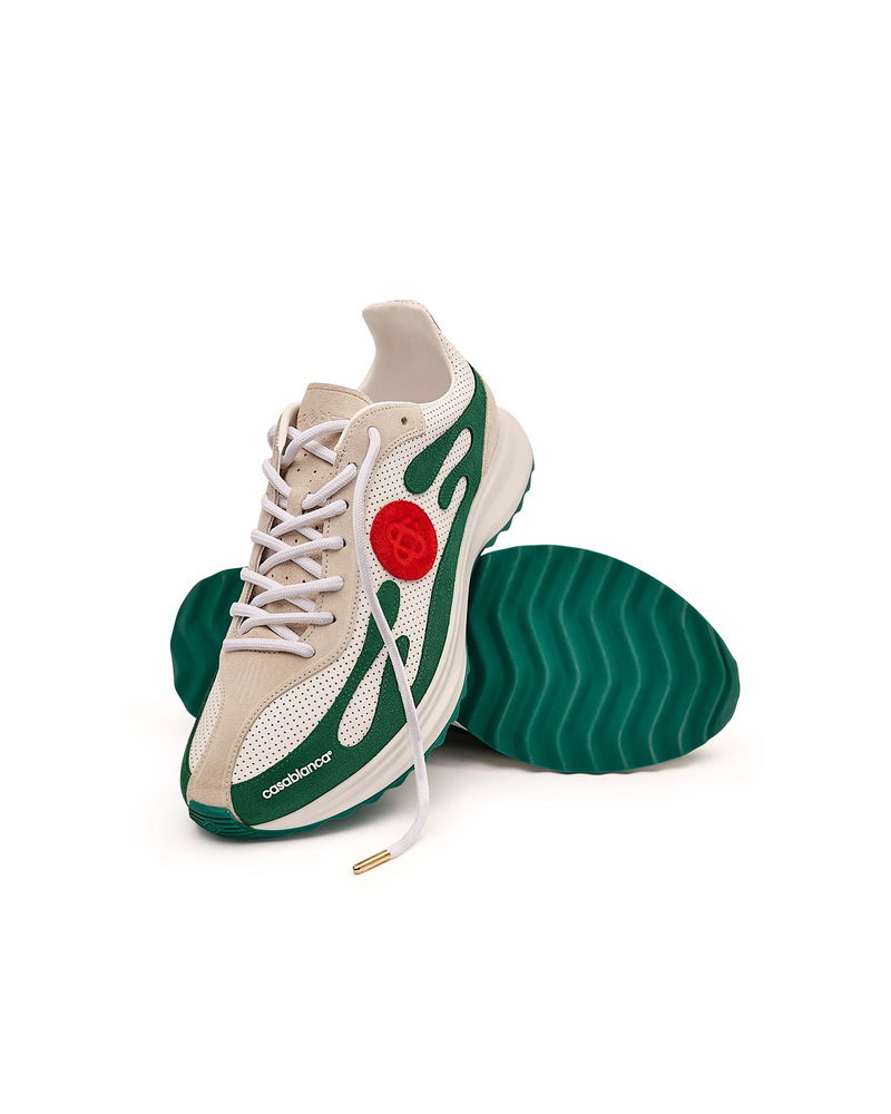 The Men's White and Green Stade Sneaker takes its name from the Ancient Greek measurement for the distance of a foot race, which later became the word for stadium. The style is inspired by performance running shoes and is a transportation of modern technology from ancient tradition, the codes of modern running with the lightweight mesh and glow print add to the modernity. The sole features sculptured curves, which is a reference to our Atlantis shoe and a stable of Casablanca design.
