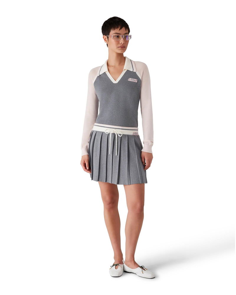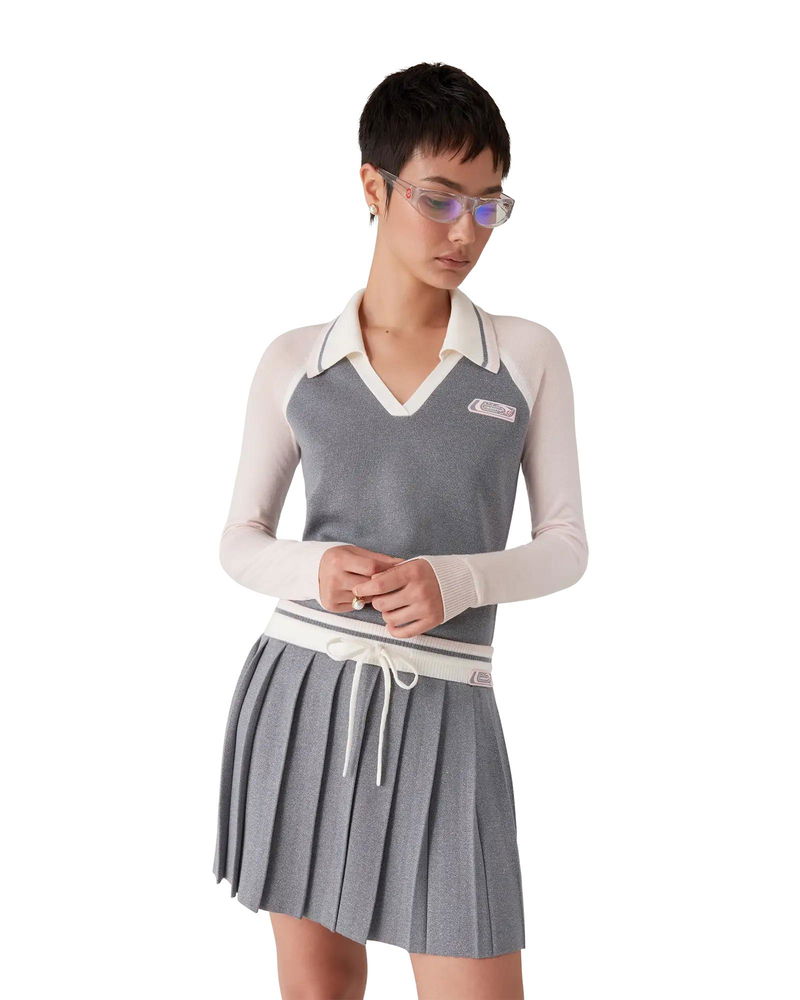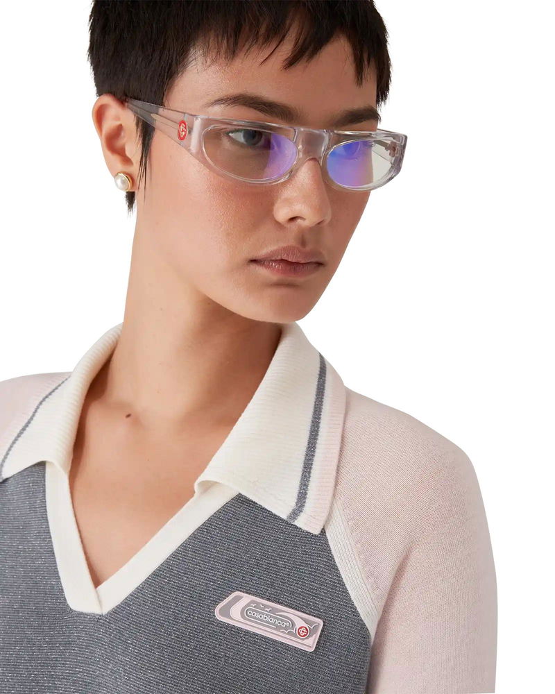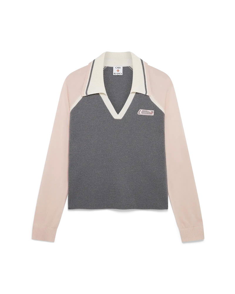The merino tennis long-sleeve polo is a knitted design featuring the house's silicon logo patch. Completed with a rib collar with stripe edge detail, a V-neck, and raglan sleeves with rib edge detail.