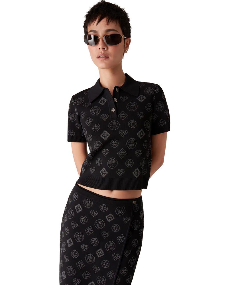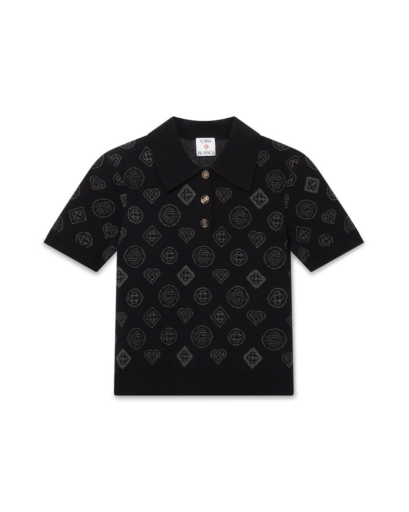 Crystal Monogram Knit Polo Shirt