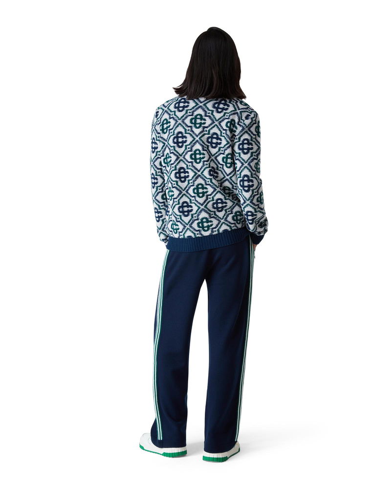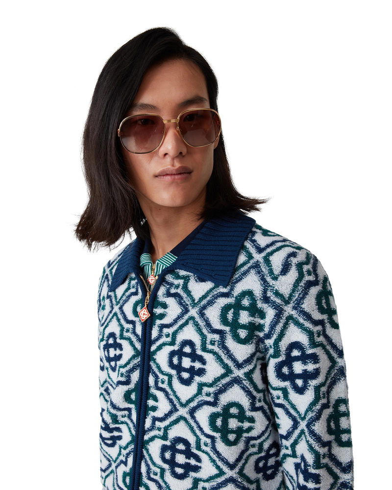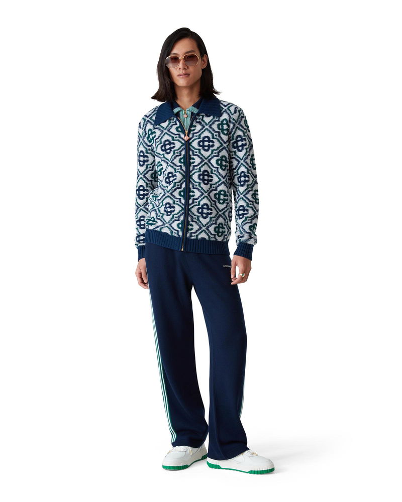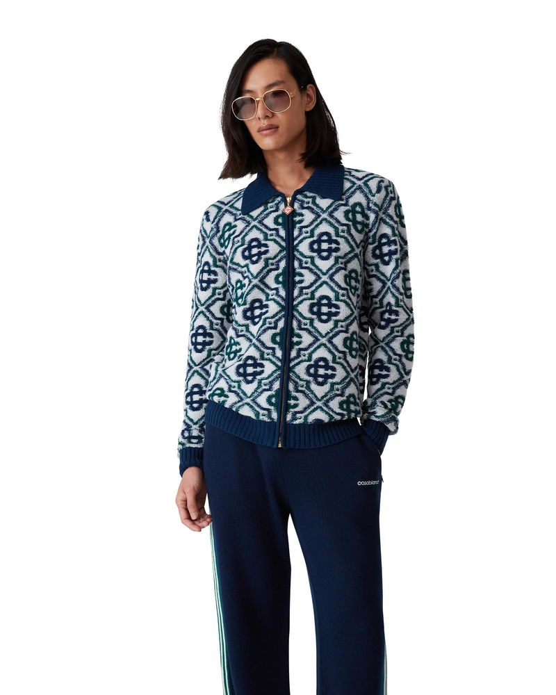 The monogram knit zip jumper is a classic design featuring the house's signature monogram crafted from a wool blend knit. Completed with a front zip closure, contrast rib collar, cuffs, hem, and side pockets - designed for a slim fit. Merino wool fabric 98% merino wool 1% polyamide 1% elastane Colour: green/navy Specialised dry clean only The model is 187cm/6'1 and is wearing a size M Made in China Monogram Knit Zip Jumper, Size XXL by Casablanca Paris