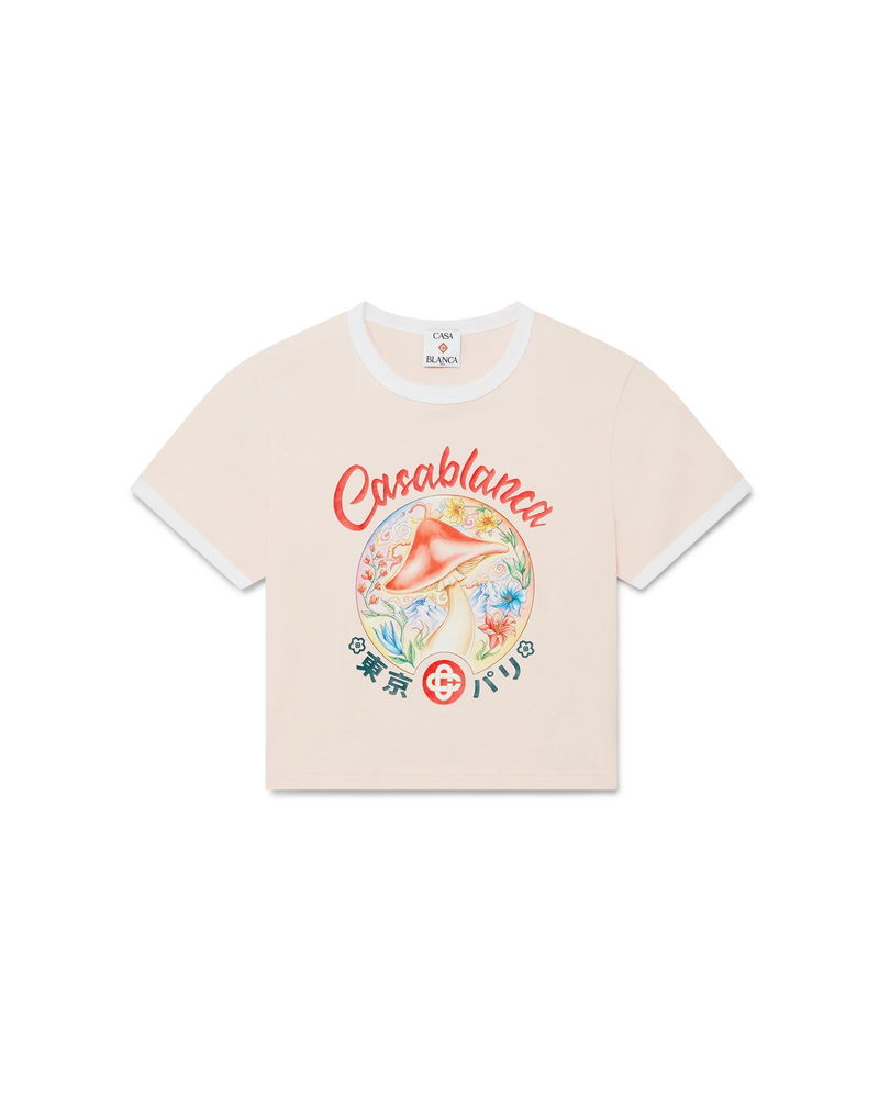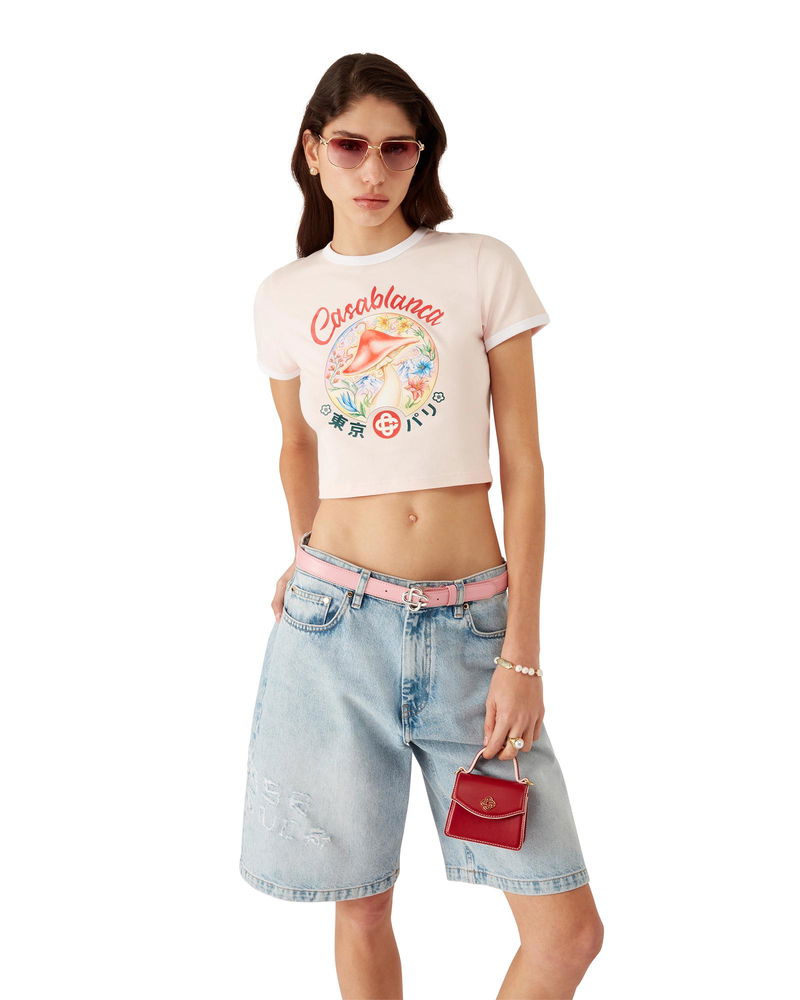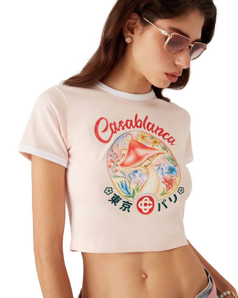 The Mushroom Emblem cropped t-shirt is a short-sleeve design featuring one of the house's signature design elements - the mushroom - crafted from pima cotton fabric. Completed with a classic crew neck. Designed to fit above the navel.