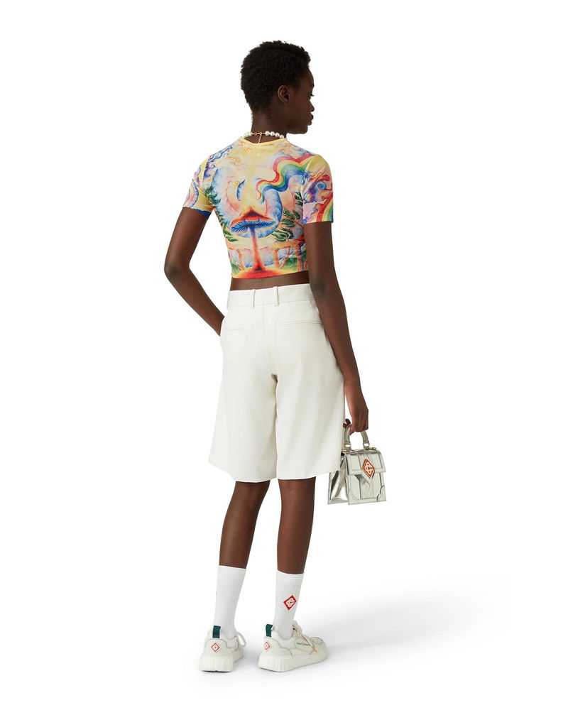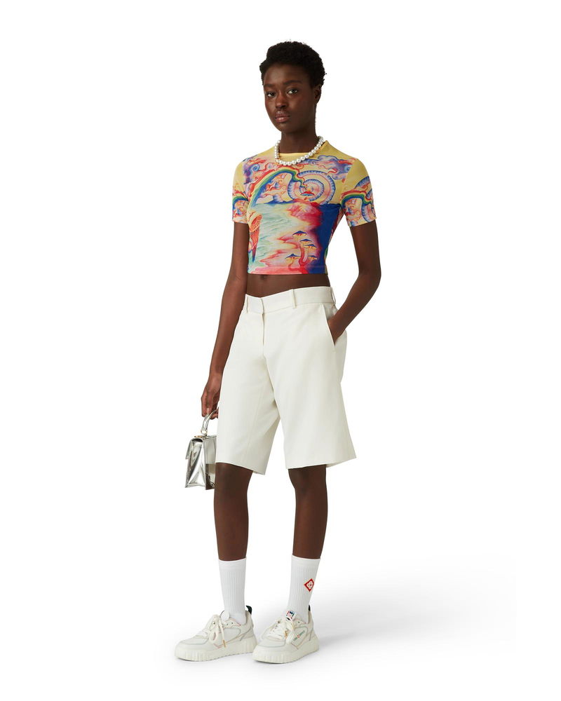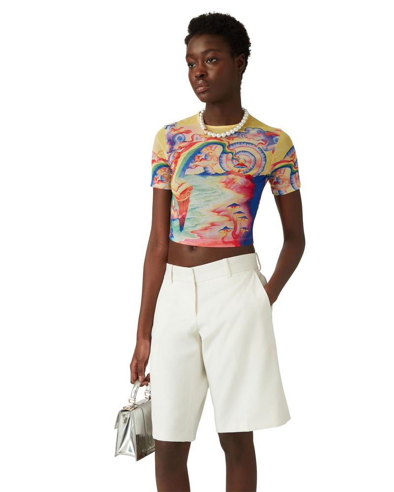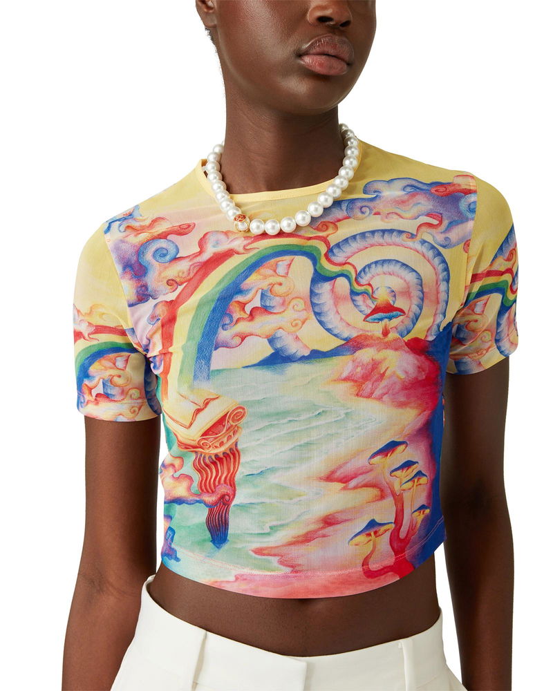 The Natures Teacher mesh baby t-shirt is a short-sleeved all-over printed design crafted from a stretch mesh fabric featuring the house's seasonal print, inspired by the continued study of the classical beauty and contemporary allure of Ancient Greece, incorporating the house's design elements.