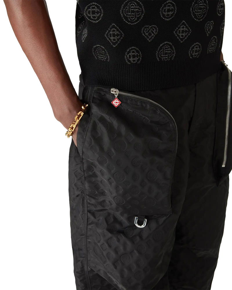 The nylon jacquard cargo trousers are a straight-leg design featuring the house's Honeydew logo repeat. This repeat differs from our other monograms, as it combines unique shapes to form a cohesive pattern.