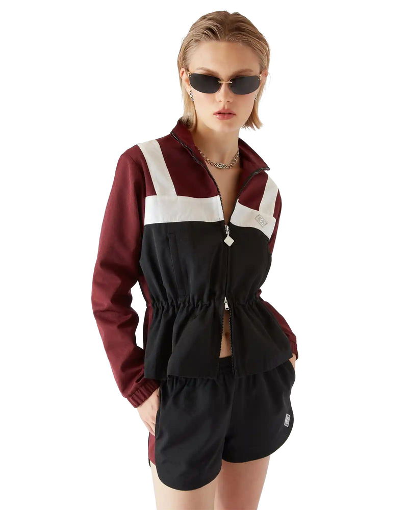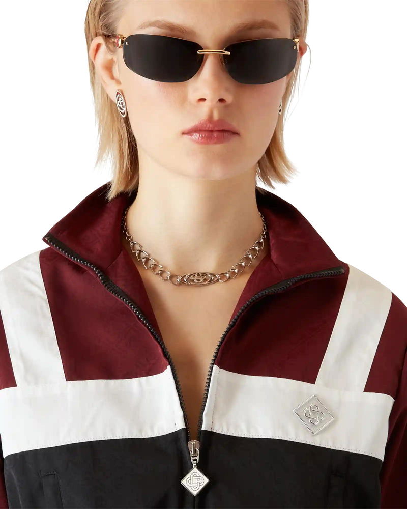 Completed with a zip closure featuring the house's signature diamond zipper tab, a high-neck, a relaxed silhouette, an internal elasticised drawstring waistband, and elasticised cuff detailing.