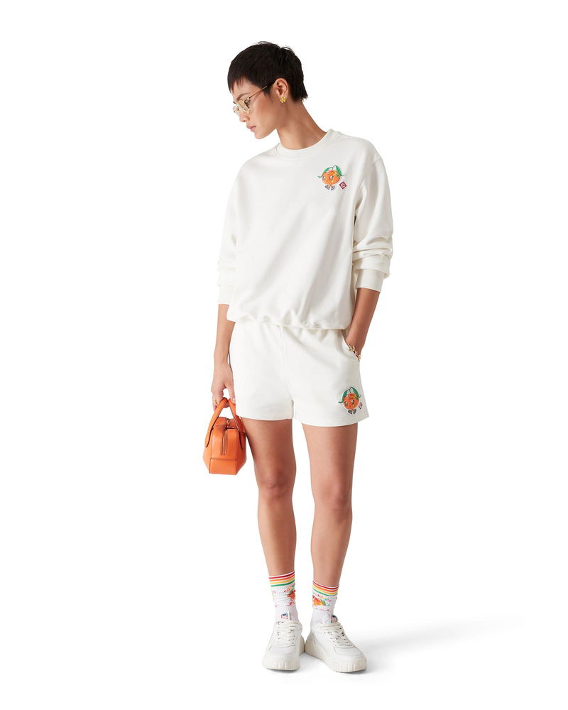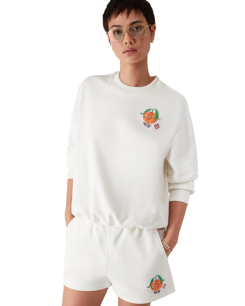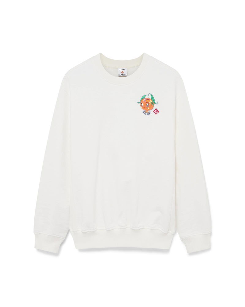 The Orange Mascot sweatshirt is a long-sleeve, embroidered design featuring the season's artwork of this character, designed as an orange - another key figure in our universe, featuring Casa accessories, glasses, and sneakers - primarily featured in the womenswear looks. Completed with a classic rib crew neck, cuffs and hem.