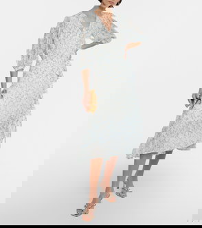 The final artwork merges graphic, sporty aesthetics with chrome branding. Completed with string fastenings at the neck and back, and a backless A-line silhouette.