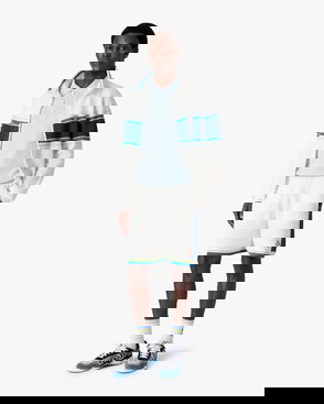 White & Blue Striped Mesh Track Jacket