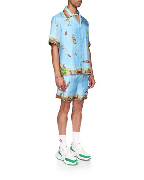 Casablanca is one of luxury fashion's most distinctive new voices. Founded in Paris by French-Moroccan designer Charaf Tajer, it's a modern reimagining of the après-sport aesthetic, where Neapolitan tailoring meets vivid, travel-inspired prints in silk, terrycloth and cashmere.
