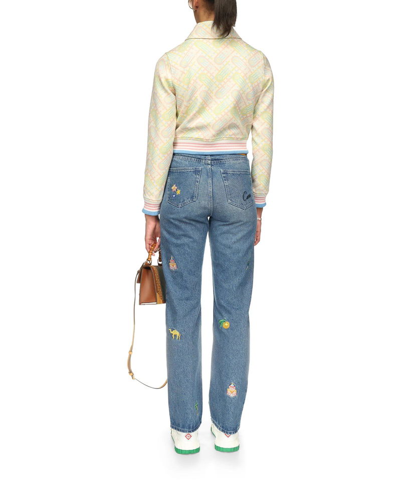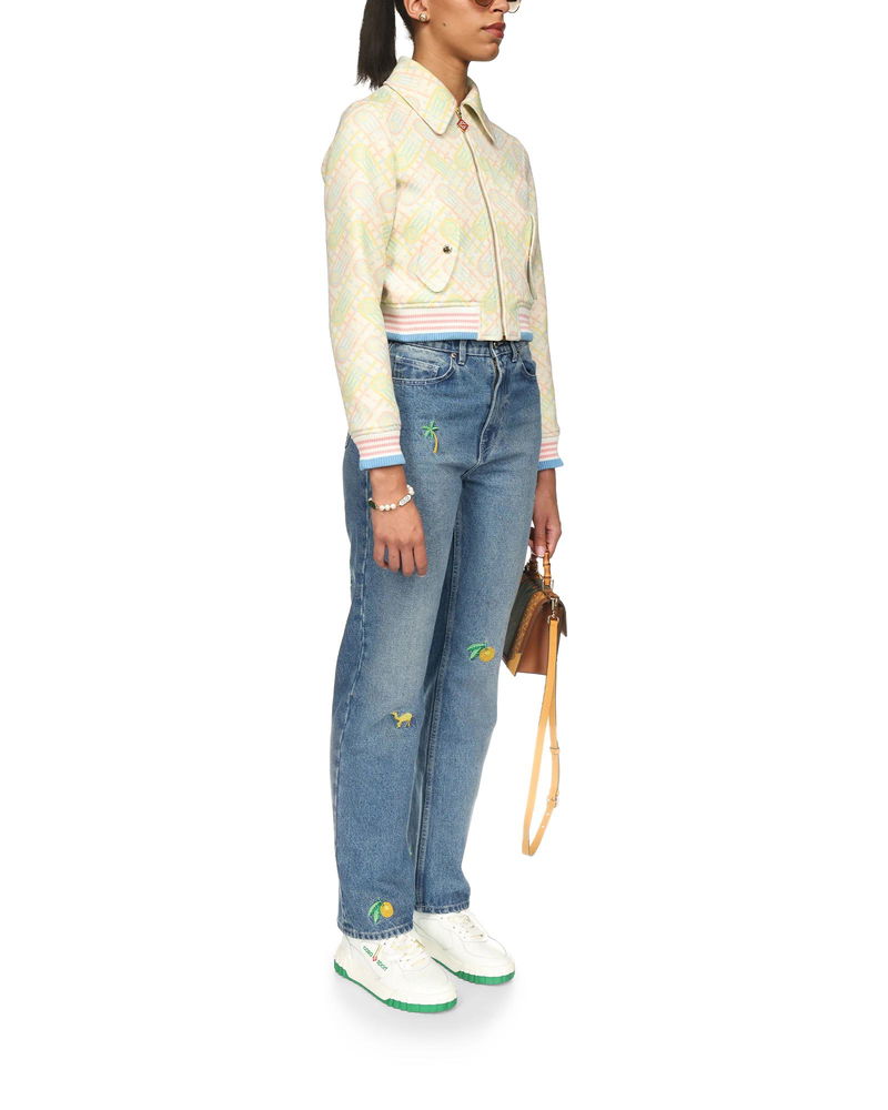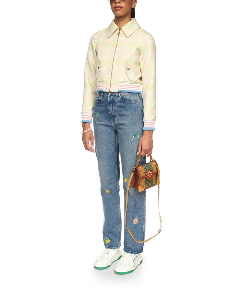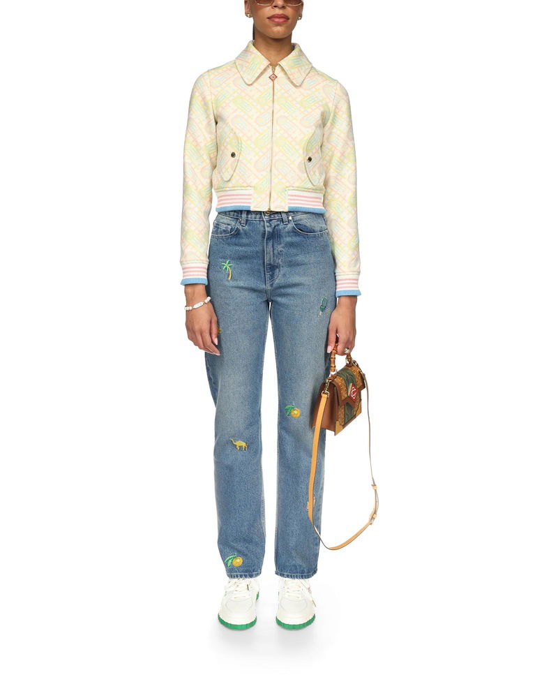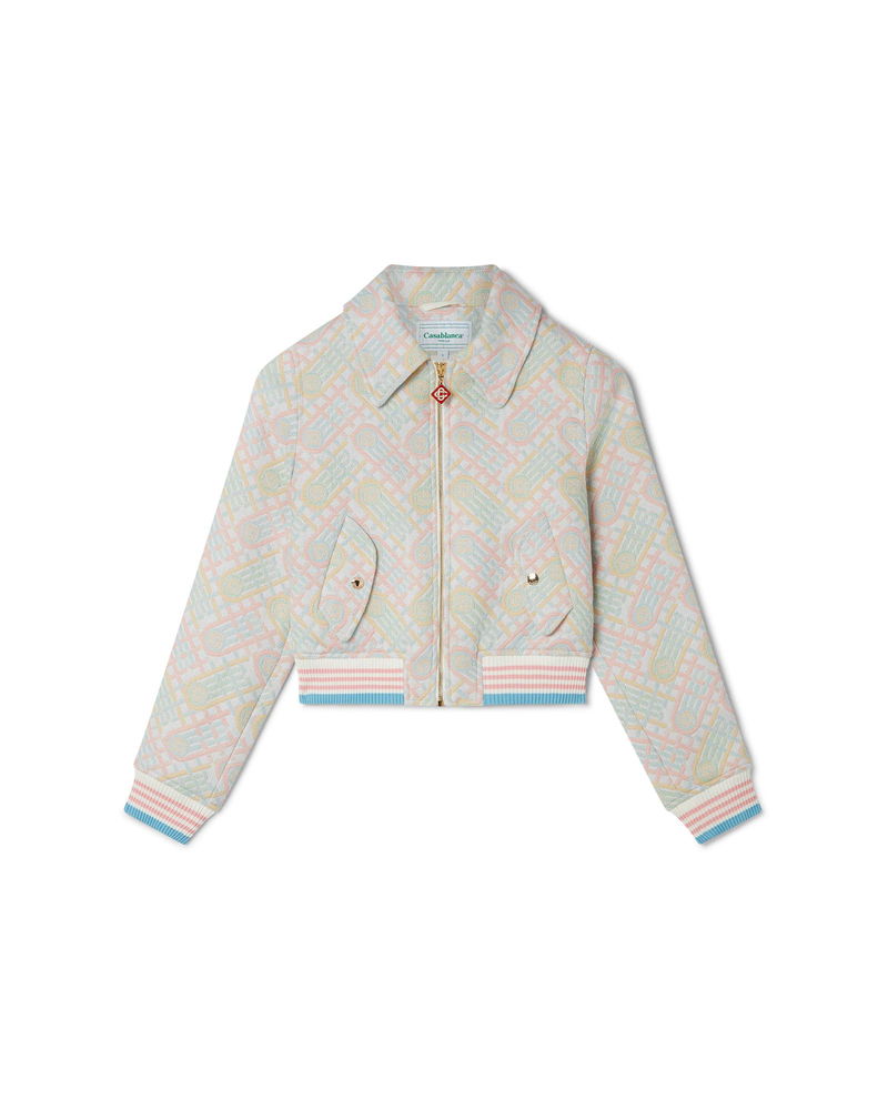 Crafted from a ping pong monogram virgin wool fabric and completed with front pockets with gold-plated hardware, a contrast detail rib on hem and cuffs, collar, front zip closure with a diamond logo, and a Casablanca branded label.