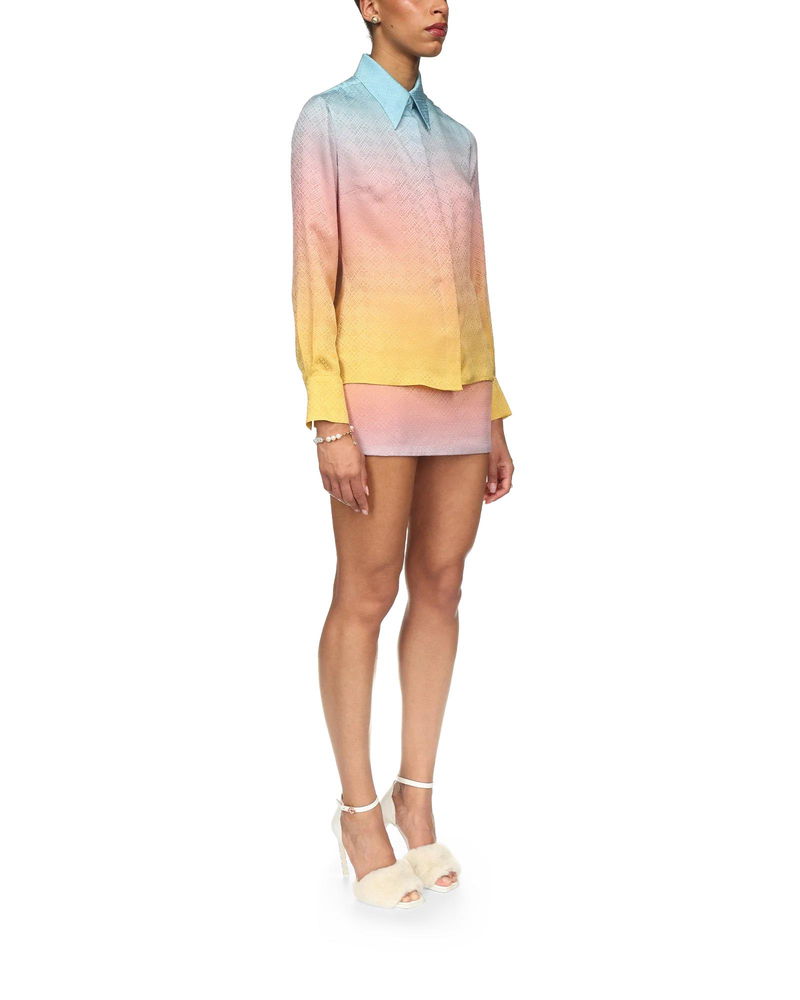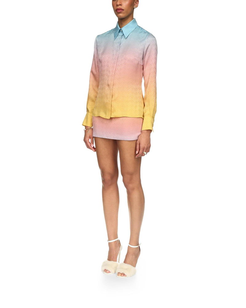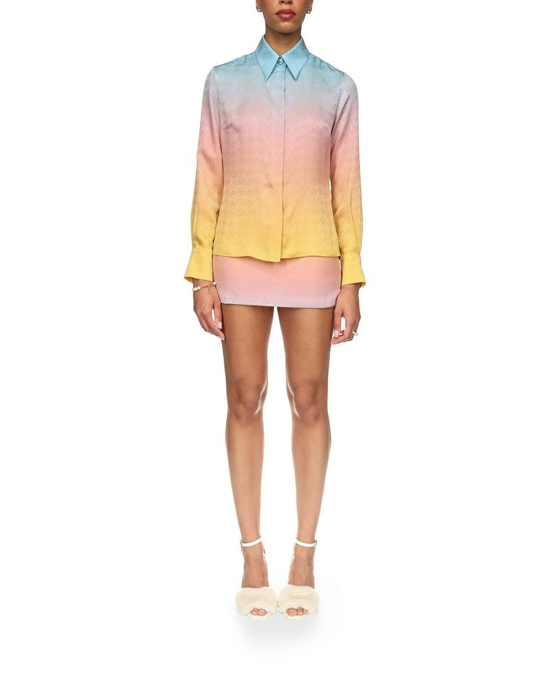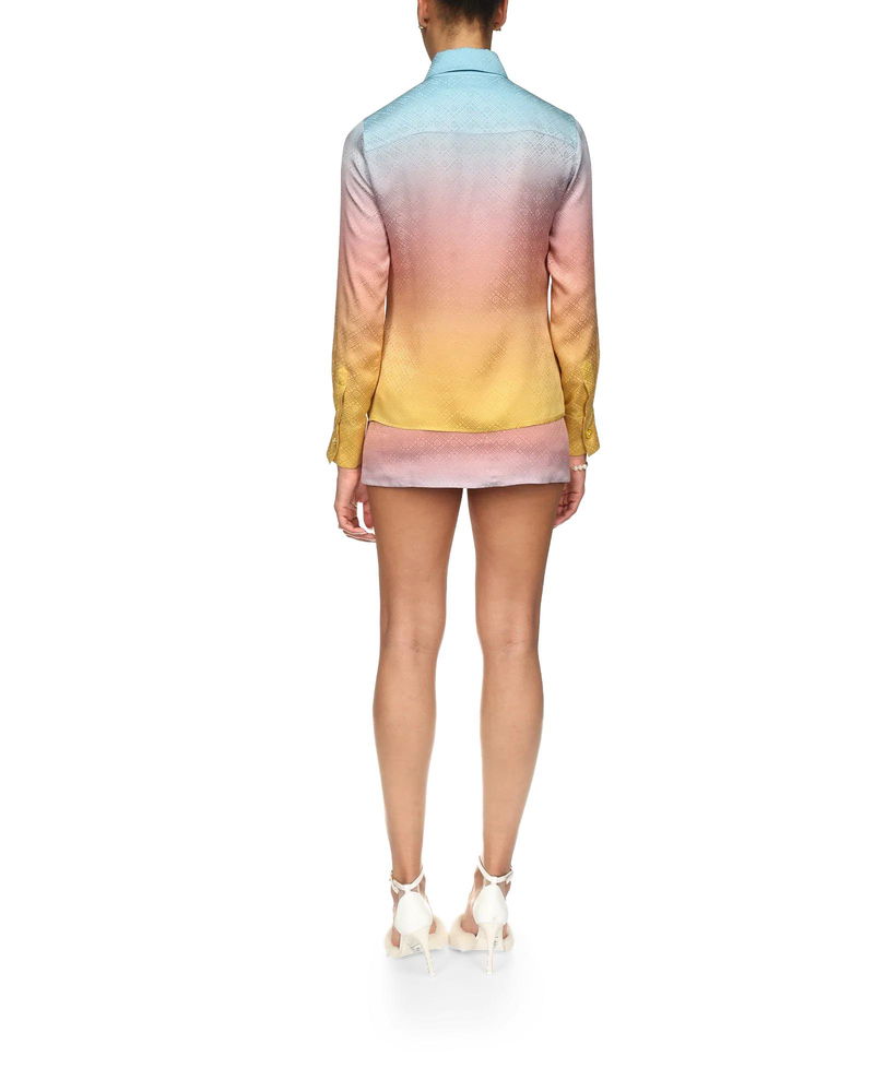 The Ping Pong Gradient silk shirt is an all-over printed design featuring the ping pong monogram ball in motion, taken from the house's Japan collection.