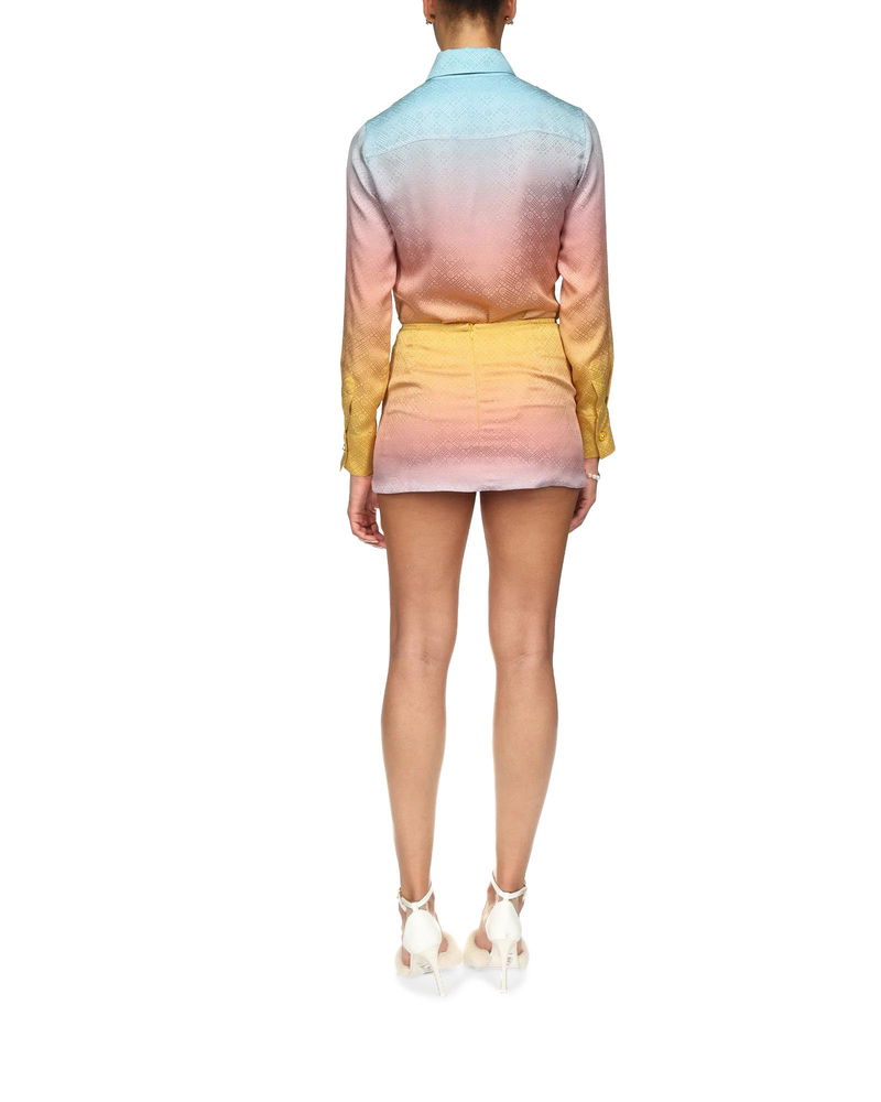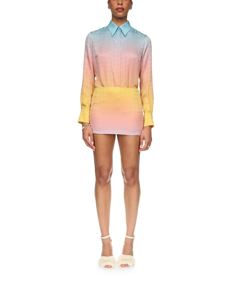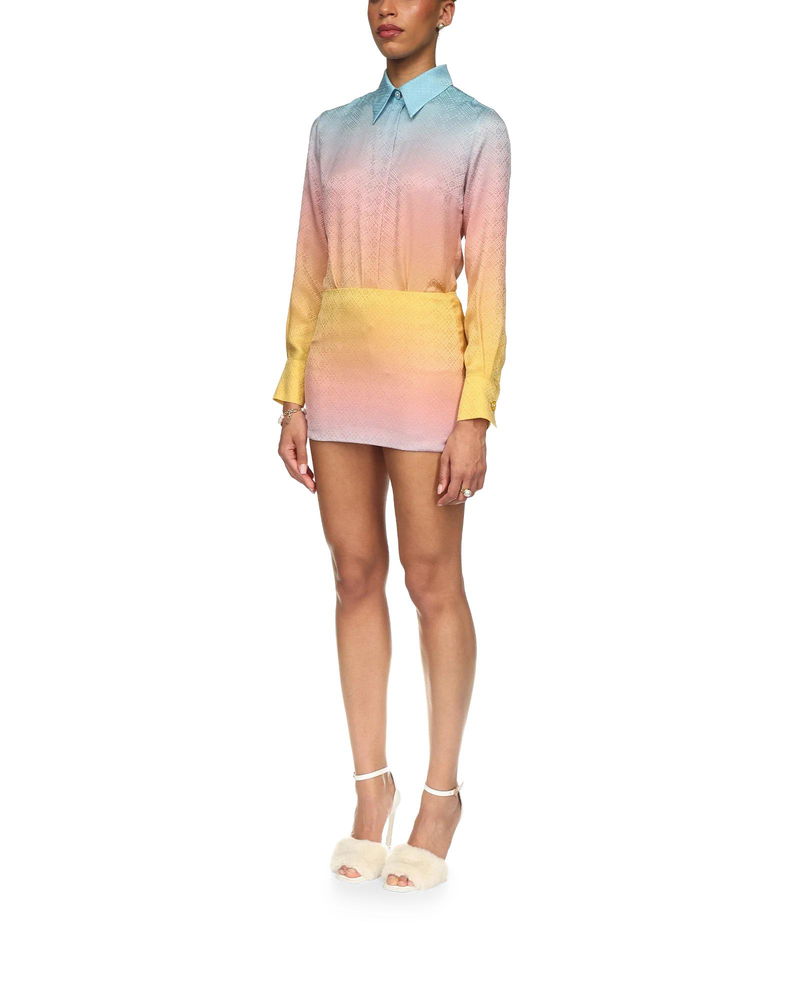 The Ping Pong Gradient silk skirt is a classic mini skirt design featuring an all-over print of a ping pong ball in motion, taken from the house's Japan collection.