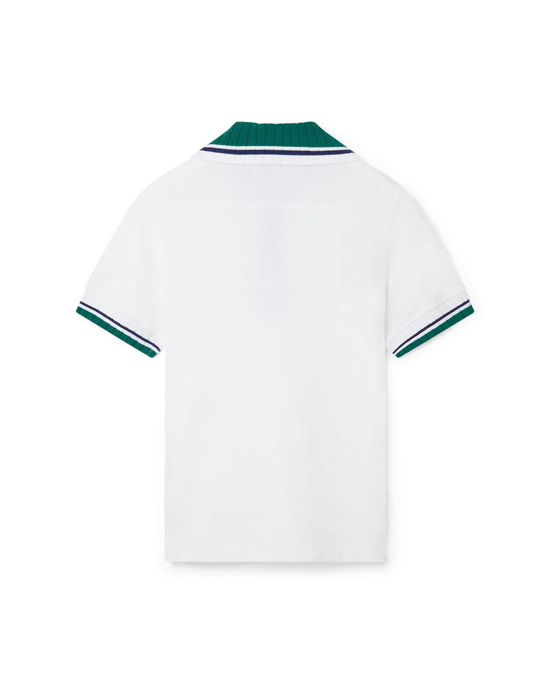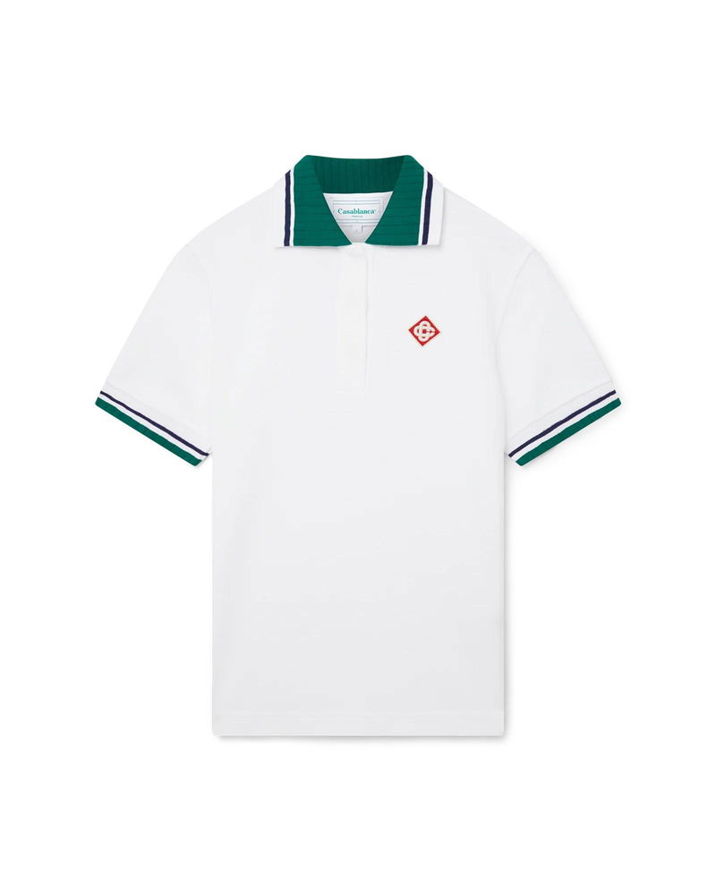 Crafted from an organic cotton pique fabric, completed with contrast detail collar and cuffs, three-button placket closure, and a Casablanca branded label.